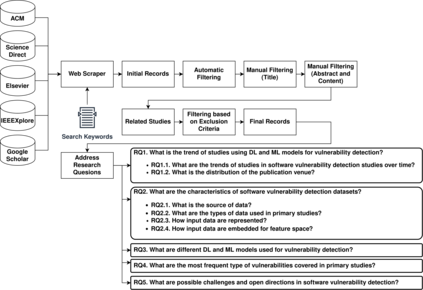 Software vulnerability detection is critical in software security because it identifies potential bugs in software systems, enabling immediate remediation and mitigation measures to be implemented before they may be exploited. Automatic vulnerability identification is important because it can evaluate large codebases more efficiently than manual code auditing. Many Machine Learning (ML) and Deep Learning (DL) based models for detecting vulnerabilities in source code have been presented in recent years. However, a survey that summarises, classifies, and analyses the application of ML/DL models for vulnerability detection is missing. It may be difficult to discover gaps in existing research and potential for future improvement without a comprehensive survey. This could result in essential areas of research being overlooked or under-represented, leading to a skewed understanding of the state of the art in vulnerability detection. This work address that gap by presenting a systematic survey to characterize various features of ML/DL-based source code level software vulnerability detection approaches via five primary research questions (RQs). Specifically, our RQ1 examines the trend of publications that leverage ML/DL for vulnerability detection, including the evolution of research and the distribution of publication venues. RQ2 describes vulnerability datasets used by existing ML/DL-based models, including their sources, types, and representations, as well as analyses of the embedding techniques used by these approaches. RQ3 explores the model architectures and design assumptions of ML/DL-based vulnerability detection approaches. RQ4 summarises the type and frequency of vulnerabilities that are covered by existing studies. Lastly, RQ5 presents a list of current challenges to be researched and an outline of a potential research roadmap that highlights crucial opportunities for future work.
