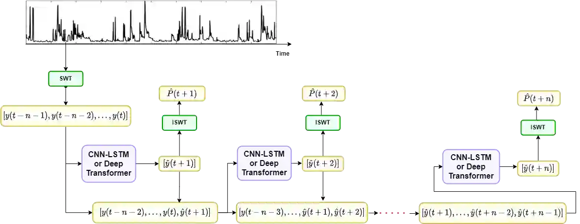 翻译:因此,未来的电力系统应提供高水平的灵活性,以便控制能源消耗。 准确预测能源总和和单个站点水平的未来能源需求/负荷对于能源工业的决策者和专业人员非常重要。 预测能源负荷对能源提供者和消费者更加有利,使他们能制定高效生产战略以满足需求。本研究报告介绍了两种混合级联模式,用于在不同分辨率中预测多步家庭电力消费。第一个模型将固定式波列变(SWT)作为高效的信号预处理技术,与 Convolual Neal网络和长期短期内存(LSTM)相结合。第二个混合模型将SWT与一个以自我注意为基础的神经网络结构(称为变压器)结合起来。在多步能源预测问题中使用SWT等时间频率分析方法的主要制约因素是,它们需要顺序信号,使多步预测应用中的信号重建有问题。 级联式模型可以通过累进产出有效地解决这一问题。实验结果显示,拟议的混合模型比现有的多步消费预测方法更精确。