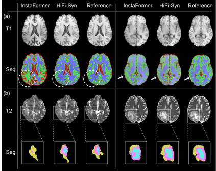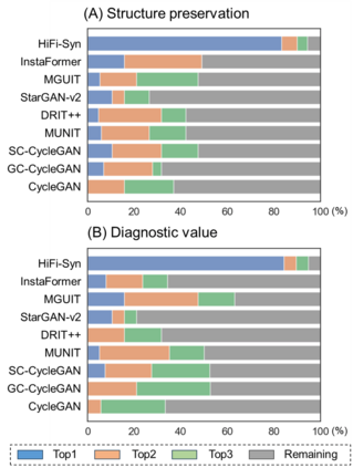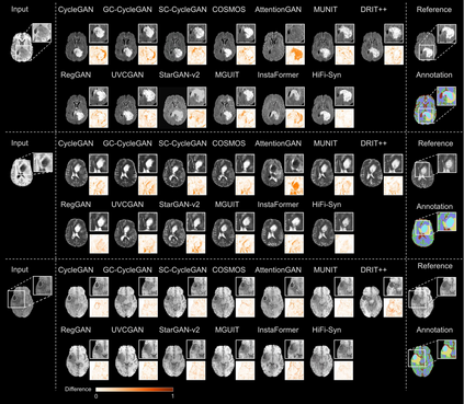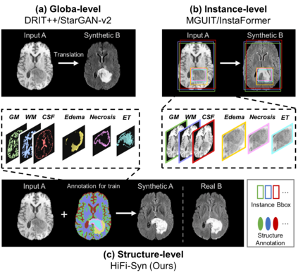 Synthesizing medical images while preserving their structural information is crucial in medical research. In such scenarios, the preservation of anatomical content becomes especially important. Although recent advances have been made by incorporating instance-level information to guide translation, these methods overlook the spatial coherence of structural-level representation and the anatomical invariance of content during translation. To address these issues, we introduce hierarchical granularity discrimination, which exploits various levels of semantic information present in medical images. Our strategy utilizes three levels of discrimination granularity: pixel-level discrimination using a Brain Memory Bank, structure-level discrimination on each brain structure with a re-weighting strategy to focus on hard samples, and global-level discrimination to ensure anatomical consistency during translation. The image translation performance of our strategy has been evaluated on three independent datasets (UK Biobank, IXI, and BraTS 2018), and it has outperformed state-of-the-art algorithms. Particularly, our model excels not only in synthesizing normal structures but also in handling abnormal (pathological) structures, such as brain tumors, despite the variations in contrast observed across different imaging modalities due to their pathological characteristics. The diagnostic value of synthesized MR images containing brain tumors has been evaluated by radiologists. This indicates that our model may offer an alternative solution in scenarios where specific MR modalities of patients are unavailable. Extensive experiments further demonstrate the versatility of our method, providing unique insights into medical image translation.