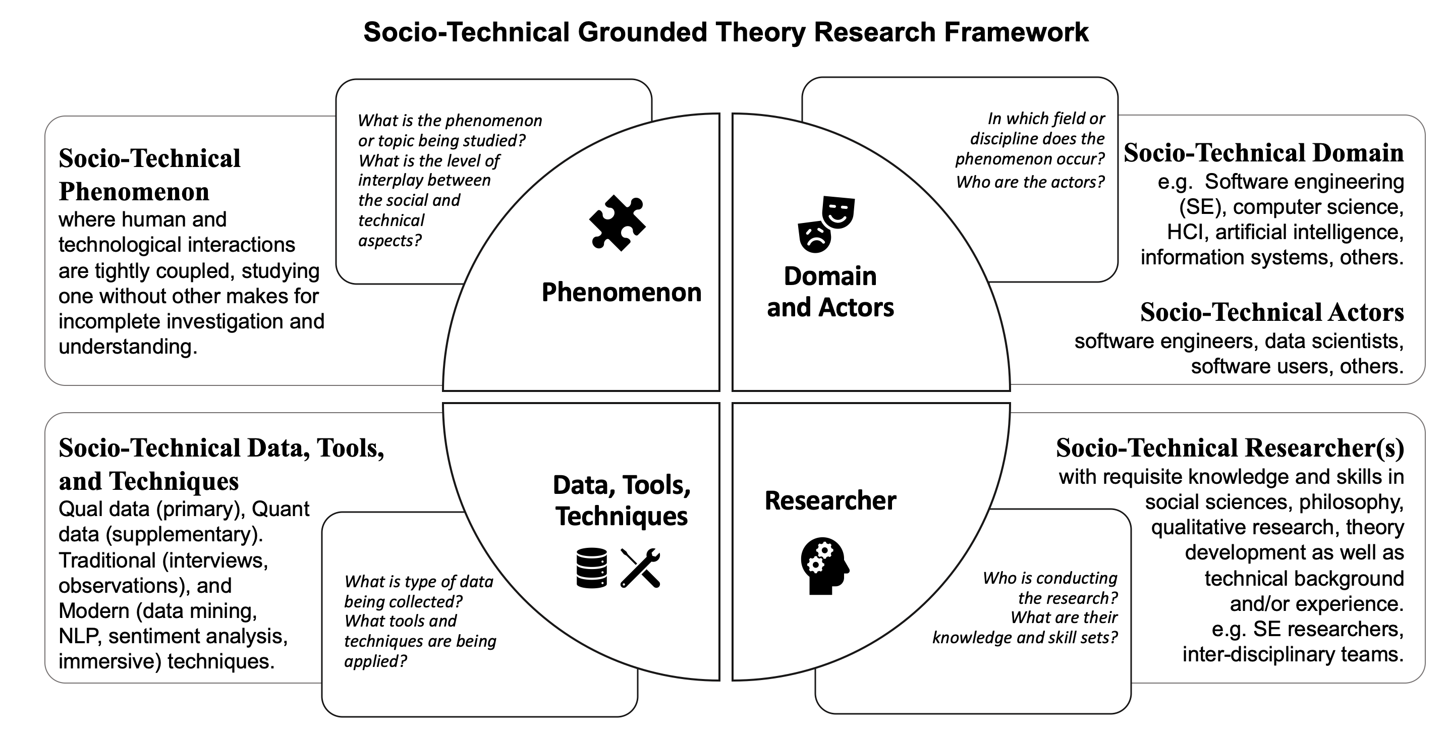 Grounded Theory (GT), a sociological research method designed to study social phenomena, is increasingly being used to investigate the human and social aspects of software engineering (SE). However, being written by and for sociologists, GT is often challenging for a majority of SE researchers to understand and apply. Additionally, SE researchers attempting ad hoc adaptations of traditional GT guidelines for modern socio-technical contexts often struggle in the absence of clear and relevant guidelines to do, resulting in poor quality studies. To overcome these research community challenges and leverage modern research opportunities, this paper presents Socio-Technical Grounded Theory (STGT) designed to ease application and achieve quality outcomes. It defines what exactly is meant by a ST research context and presents the STGT guidelines that expand GT's philosophical foundations, provide increased clarity and flexibility in its methodological steps and procedures, define possible scope and contexts of application, encourage frequent reporting of a variety of interim, preliminary, and mature outcomes, and introduce nuanced evaluation guidelines for different outcomes. It is hoped that the SE research community and related ST disciplines such as computer science, data science, artificial intelligence, information systems, human computer/robot/AI interaction, human-centered emerging technologies (and increasingly other disciplines being transformed by rapid digitalisation and AI-based augmentation), will benefit from applying STGT to conduct quality research studies and systematically produce rich findings and mature theories with confidence.
