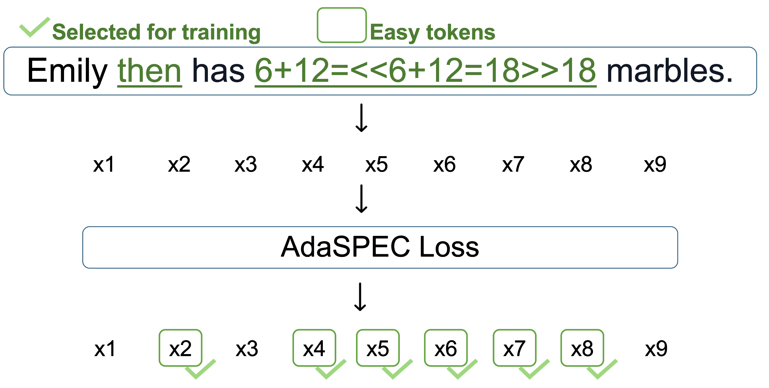 Speculative Decoding (SD) accelerates large language model inference by employing a small draft model to generate predictions, which are then verified by a larger target model. The effectiveness of SD hinges on the alignment between these models, which is typically enhanced by Knowledge Distillation (KD). However, conventional KD methods aim to minimize the KL divergence between the draft and target models across all tokens, a goal that is misaligned with the true objective of SD, which is to maximize token acceptance rate. Therefore, draft models often struggle to fully assimilate the target model's knowledge due to capacity constraints, leading to suboptimal performance. To address this challenge, we propose AdaSPEC, a novel method that incorporates selective token filtering into the KD process. AdaSPEC utilizes a reference model to identify and filter out difficult-to-fit tokens, enabling the distillation of a draft model that better aligns with the target model on simpler tokens. This approach improves the overall token acceptance rate without compromising generation quality. We evaluate AdaSPEC across diverse tasks, including arithmetic reasoning, instruction-following, coding, and summarization, using model configurations of 31M/1.4B and 350M/2.7B parameters. Our results demonstrate that AdaSPEC consistently outperforms the state-of-the-art DistillSpec method, achieving higher acceptance rates across all tasks (up to 15\%). The code is publicly available at https://github.com/yuezhouhu/adaspec.