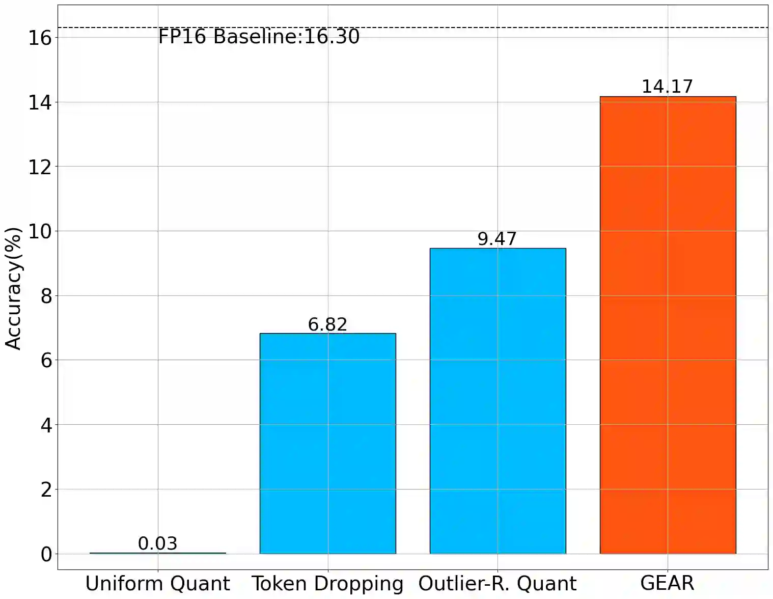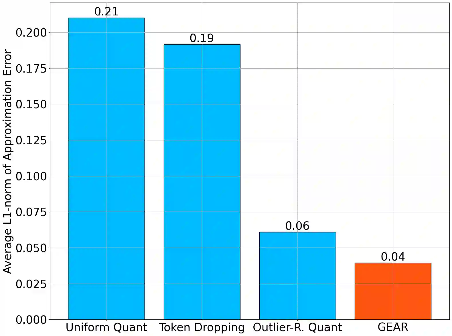 Key-value (KV) caching has become the de-facto to accelerate generation speed for large language models (LLMs) inference. However, the growing cache demand with increasing sequence length has transformed LLM inference to be a memory bound problem, significantly constraining the system throughput. Existing methods rely on dropping unimportant tokens or quantizing all entries uniformly. Such methods, however, often incur high approximation errors to represent the compressed matrices. The autoregressive decoding process further compounds the error of each step, resulting in critical deviation in model generation and deterioration of performance. To tackle this challenge, we propose GEAR, an efficient KV cache compression framework that achieves near-lossless high-ratio compression. GEAR first applies quantization to majority of entries of similar magnitudes to ultra-low precision. It then employs a low rank matrix to approximate the quantization error, and a sparse matrix to remedy individual errors from outlier entries. By adeptly integrating three techniques, GEAR is able to fully exploit their synergistic potentials. Our experiments demonstrate that compared to alternatives, GEAR achieves near-lossless 4-bit KV cache compression with up to 2.38x throughput improvement, while reducing peak-memory size up to 2.29x. Our code is publicly available at https://github.com/HaoKang-Timmy/GEAR.
