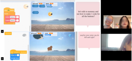 What role can AI play in supporting and constraining creative coding by families? To investigate these questions, we built a Wizard of Oz platform to help families engage in creative coding in partnership with a researcher-operated AI Friend. We designed a 3 week series of programming activities with ten children, 7 to 12 years old, and nine parents. Using a creative self efficacy lens, we observe that families found it easier to generate game ideas when prompted with questions by AI Friend; parents played a unique role in guiding children in more complex programming tasks when the AI Friend failed to help, and children were more encouraged to write code for novel ideas using the AI friend help. These findings suggest that AI supported platforms should highlight unique family AI interactions focused on children's agency and creative self-efficacy.