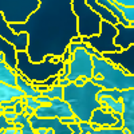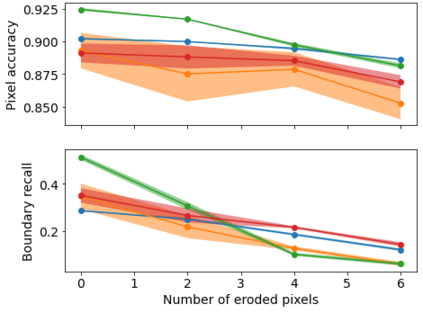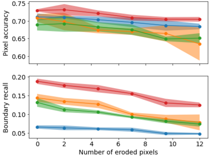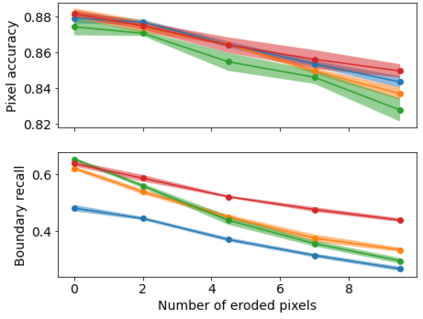 Semantic segmentation is the task of classifying each pixel in an image. Training a segmentation model achieves best results using annotated images, where each pixel is annotated with the corresponding class. When obtaining fine annotations is difficult or expensive, it may be possible to acquire coarse annotations, e.g. by roughly annotating pixels in an images leaving some pixels around the boundaries between classes unlabeled. Segmentation with coarse annotations is difficult, in particular when the objective is to optimize the alignment of boundaries between classes. This paper proposes a regularization method for models with an encoder-decoder architecture with superpixel based upsampling. It encourages the segmented pixels in the decoded image to be SLIC-superpixels, which are based on pixel color and position, independent of the segmentation annotation. The method is applied to FCN-16 fully convolutional network architecture and evaluated on the SUIM, Cityscapes, and PanNuke data sets. It is shown that the boundary recall improves significantly compared to state-of-the-art models when trained on coarse annotations.
