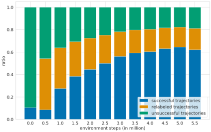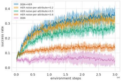 翻译:语言创造了一种对世界的缩略语,并允许通过构成性来描述无限的情况和目标。 虽然这些特征特征可以促进指导、调节或结构互动代理行为,但对于在情景之后的简单指令中正确描述语言理解和强化学习仍然是一个开放的问题。 这种共同学习问题通过专家演示、辅助损失或神经感应偏差来缓解。 在本文中,我们提议一种统称方法,称为Hindsight General for experience replay (HIGher), 将Hindsight Experience Replay (HER) 方法扩展到语言限制的政策设置。 当该代理不履行指令时, HIGher 学会发布与代理轨迹匹配的新指令, 并用正面的奖励重新标出事件。 为此, HIGher 学会使用过去成功的轨迹将状态映射成教学图, 从而不再需要外部专家干预, 来重新标出Vanilla HER 。 我们展示了我们在BeIAI环境中采用的方法的效率, 并展示它如何补充其他教学方法。