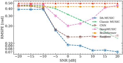 翻译:在传感器阵列信号处理过程中,对多个信号的抵达(DoA)估计方向是传感器阵列信号处理的关键。流行的多信号DoA估计法是多信号分类(MUSIC)算法,它使高性能超超分辨率DoAS回收能够在实际中高度适用。 MSSIC是一种基于模型的算法,它依靠对信号与信号本身(非一致性、窄带源)的测量和假设之间关系的精确数学描述,依赖对信号本身(非一致性、窄带源)的测量和假设的精确数学描述。因此,它对模型的不完善十分敏感。在这项工作中,我们提议通过用专门设计的神经结构来增加算法来克服MUSIC的这些局限性。因此,我们提议的深度增强MUSIC(DA-MISIC)算法是一种基于模型/数据驱动的混合型/数据驱动的DoAA估计法,它利用数据来提高性能和稳健性,同时保持传统方法的可解释性流动。DA-MISICSA显示它能够克服纯粹方法的局限性,例如它无法成功地将连贯的资料来源和估计目前连贯信号来源的数目。我们进一步展示了DA-MISISISISA的地震阵列算算的高级数据,作为作为合成和宽带和宽带数据设想的高级数字的高度分辨率的高度分辨率的高度分辨率的分辨率的分辨率的分辨率的分辨率的分辨率的分辨率。