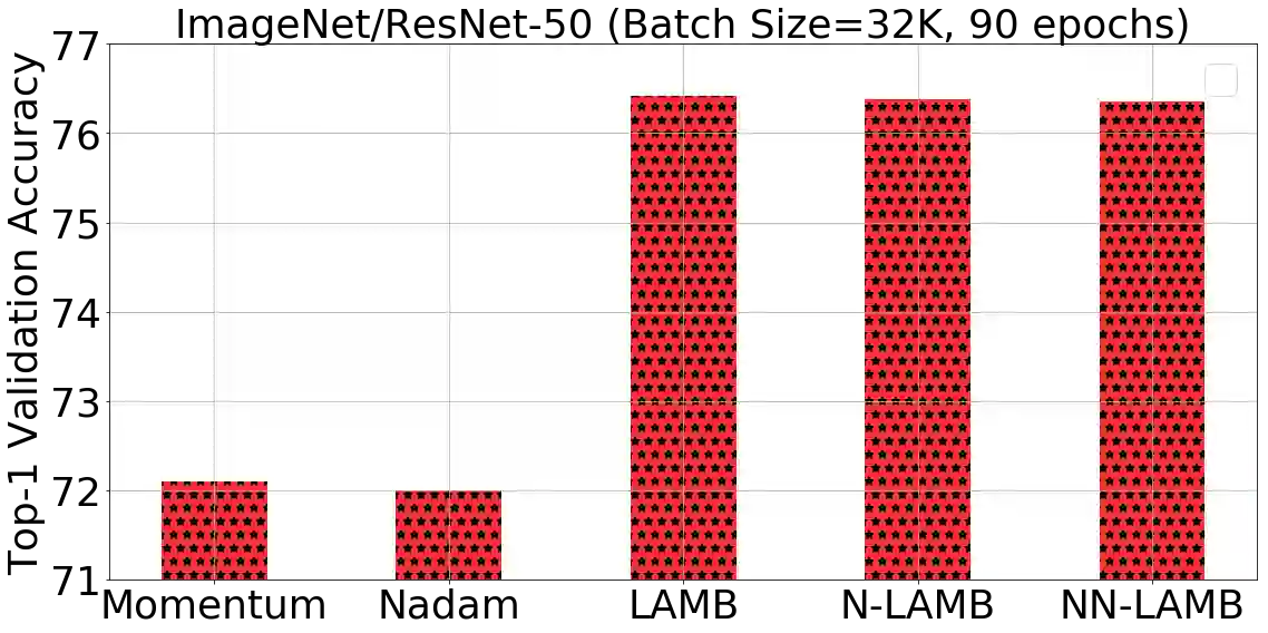 翻译:对大型数据集的大型深心神经网络的培训在计算上具有巨大的挑战性。最近人们对使用大型批量随机优化方法来解决这一问题的兴趣激增。这一研究领域最突出的算法是LARS, 使用分层适应性学习率在几分钟内将ResNet在图像网络上培训ResNet。然而,LARS在像BERT这样的关注模型方面表现不佳, 表明其绩效收益在任务之间并不一致。 在本文件中, 我们首先研究一个有原则的层次性适应性适应战略, 以加快使用大型微型小孔对深神经网络的培训。 我们利用这一战略开发了一个新的层次适应性适应性适应性大型批量优化技术, 名为LAMB; 我们随后对LAMB以及LARS进行趋同分析, 显示在一般非convex环境中与固定点的趋同。 我们的经验结果表明, LAMBBB在诸如BERT和ResNet-50培训等各种任务中表现优异性。 特别是, 我们的优化性能使非常大型的3686批次规模能够使用, 而不会降解性性地使用。通过将批量培训时间范围从76 PPU3号压缩至1号。