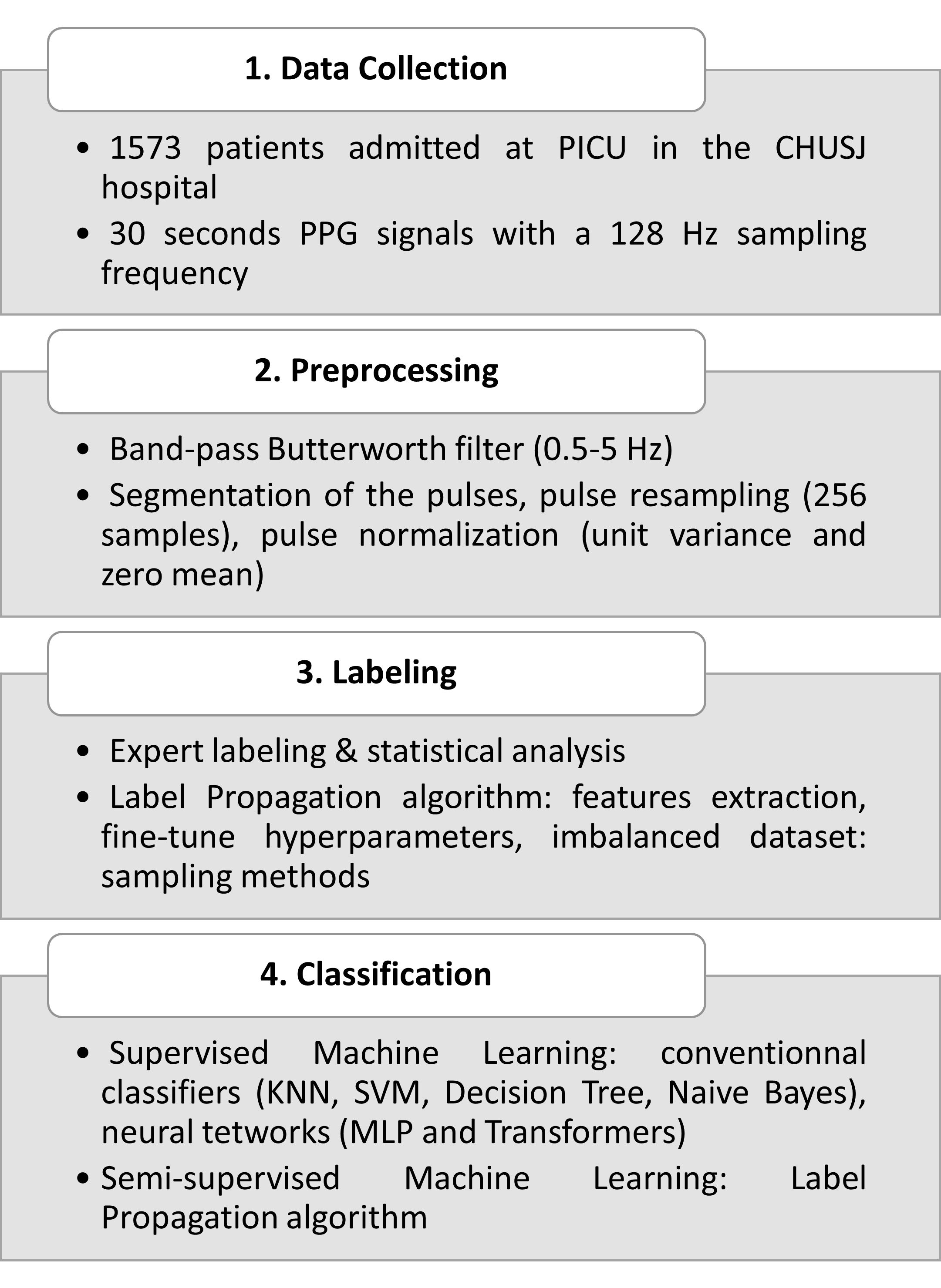 Photoplethysmogram (PPG) signals are widely used in healthcare for monitoring vital signs, but they are susceptible to motion artifacts that can lead to inaccurate interpretations. In this study, the use of label propagation techniques to propagate labels among PPG samples is explored, particularly in imbalanced class scenarios where clean PPG samples are significantly outnumbered by artifact-contaminated samples. With a precision of 91%, a recall of 90% and an F1 score of 90% for the class without artifacts, the results demonstrate its effectiveness in labeling a medical dataset, even when clean samples are rare. For the classification of artifacts our study compares supervised classifiers such as conventional classifiers and neural networks (MLP, Transformers, FCN) with the semi-supervised label propagation algorithm. With a precision of 89%, a recall of 95% and an F1 score of 92%, the KNN supervised model gives good results, but the semi-supervised algorithm performs better in detecting artifacts. The findings suggest that the semi-supervised algorithm label propagation hold promise for artifact detection in PPG signals, which can enhance the reliability of PPG-based health monitoring systems in real-world applications.
