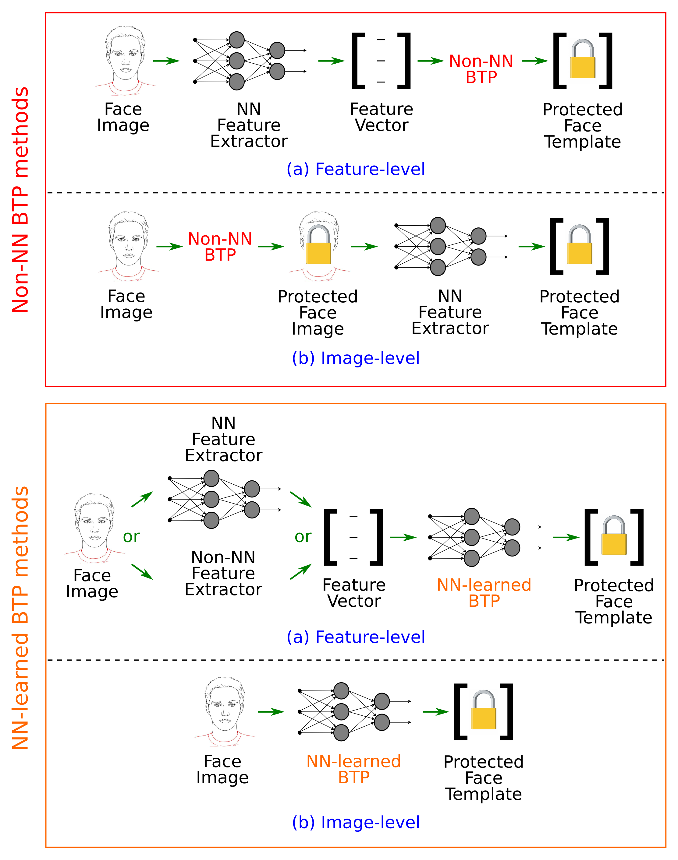 翻译:本文介绍了在神经网络面部识别系统中确保面部模板的生物鉴别模板保护方法(BTP)调查。BTP方法分为两类:非NN和NN-SB方法。非NN方法使用神经网络(NN)作为特征提取器,但BTP部分依据的是在图像级别或特征级别应用的非NN的算法。相比之下,NN-Spop方法具体使用NNN方法从无防护的面部图像/功能识别系统中学习一个受保护模板。我们从文献中举出了非NNN和NNNW的面部识别模板方法,同时讨论了两类的相对优势和弱点。我们还从三种最常见的标准(承认准确性、不可逆转性、更新性/不相连接性)的角度对BTP方法进行了评估。根据理论假设/更新方法,我们目前对真实性、更准确性、更准确性、更准确性、更准确性、更精确性、更精确性、更精确性、更精确性、更精确性、更精确性、更精确性、更精确性、更精确性、更精确性、更精确性、更精确性、更精确性、更精确性评估的实地的实地的实地评估,我们报告、更精确性、更能、更精确性、更精确性、更精确性、更精确性、更精确性、更精确性、更精确性、更精确性、更精确性、更精确性、更精确性、更精确性、更精确性、更精确性、更精确性、更精确性、更精确性、更精确性、更精确性、更精确性、更精确性、更精确性、更精确性、更精确性、更精确性、更精确性、更精确的实地评估、更精确性、更精确性、更精确的实地的实地评估、更精确的实地评估、更精确的实地评估、更精确的实地的实地评估、更精确的实地评估、更精确的实地评估、更精确的实地评估、更精确性、更精确性、更精确性、更精确性、更精确性、更精确性、更精确性、更精确性、更精确性、更精确性、更精确性、更精确性、更精确性、更精确性、更精确性、更精确性、更精确性、更精确性、更精确性
