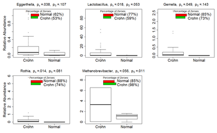 翻译:高通量测序技术允许我们测试不同人群中细菌的构成差异。 人类微生物数据的一个重要特征是,它通常包含大量零。 这些数据可以被视为由包含零点质量的两部分模型生成。 我们借助于对此类无负值数据的分析,引入了数种基于等级等级的两组和多组的此类数据测试,包括用于两组比较的短分级级级威尔科松级和两次用于多组比较的粗略Kruskal-Wallis测试。我们通过无线相对效率分析和模拟,从分析角度显示拟议测试的功率高于标准等级测试,特别是当数据中零的比例很高时。这些测试还可以用于通过简单的本位定位定位定位定位定位测算对此类数据进行重复的测量。 我们将测试应用于用于对基于两组的直线微生物数据进行的分析,以比较健康微生物构成的微生物和小行星级定位的微生物构成。 我们通过模拟显示,我们所测测测测测测的几种的克罗氏级的微生物病和误测算结果。