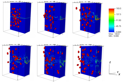Solute transport in fluid-particle systems is a fundamental process in numerous scientific and engineering disciplines. The simulation of it necessitates the consideration of solid particles with intricate shapes and sizes. To address this challenge, this study proposes the Random-Walk Metaball-Imaging Discrete Element Lattice Boltzmann Method (RW-MI-DELBM). In this model, we reconstruct particle geometries with the Metaball-Imaging algorithm, capture the particle behavior using the Discrete Element Method (DEM), simulate fluid behavior by the Lattice Boltzmann Method (LBM), and represent solute behavior through the Random Walk Method (RWM). Through the integration of these techniques with specially designed boundary conditions, we achieve to simulate the solute transport in fluid-particle systems comprising complex particle morphologies. Thorough validations, including analytical soluutions and experiments, are performed to assess the robustness and accuracy of this framework. The results demonstrate that the proposed framework can accurately capture the complex dynamics of solute transport under strict mass conservation. In particular, an investigation is carried out to assess the influence of particle morphologies on solute transport in a 3D oscillator, with a focus on identifying correlations between shape features and dispersion coefficients. Notably, all selected shape features exhibited strong correlations with the dispersion coefficient, indicating the significant influence of particle shapes on transport phenomena. However, due to the complexity of the relationship and the limited number of simulations, no clear patterns could be observed. Further comprehensive analyses incorporating a broader range of shape features and varying conditions are necessary to fully comprehend their collective influence on the dispersion coefficient.