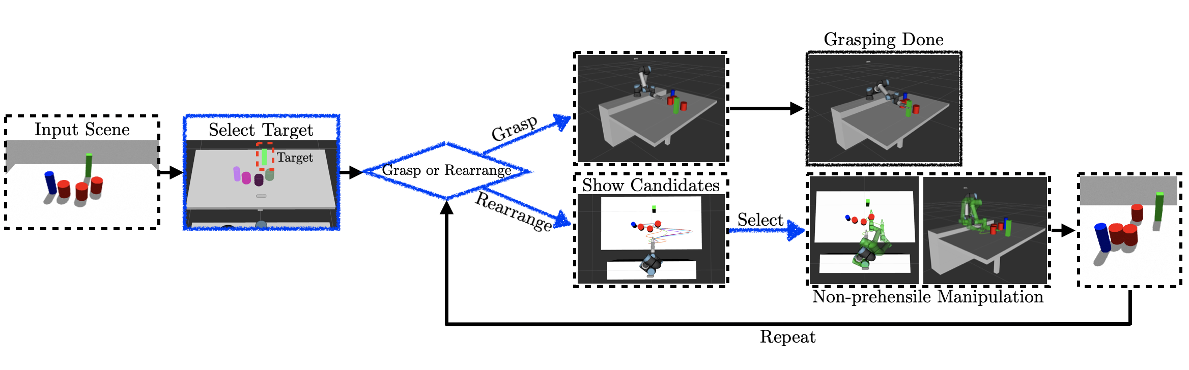 翻译:在本文中,我们提出了一个使用 RGB-D 传感器进行选取和定位任务的半自主远程操作框架。 特别是, 我们假设目标对象位于一个杂乱的环境中, 为了高效的远程操作, 将先发制人抓住和非先发制人操纵结合起来。 我们利用基于轨迹的强化学习来学习非先发制人操纵来重新排列对象, 以便能够直接抓取。 从杂乱的环境的深度图像和目标对象的位置来看, 所学的政策可以为人类操作者提供多种非先发制人操纵的选项。 我们仔细设计了一种奖赏功能, 用于在模拟环境中对政策进行培训的后期任务。 然后, 将经过培训的政策转移到现实世界, 并在一系列现实世界实验中评估了不同数量的天体, 我们在此实验中显示, 所拟议的方法在捕捉的时间长度上超过了手动键盘控制 。