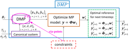 Dynamic Movement Primitives (DMP) have found remarkable applicability and success in various robotic tasks, which can be mainly attributed to their generalization, modulation and robustness properties. Nevertheless, the spatial generalization of DMP can be problematic in some cases, leading to excessive or unnatural spatial scaling. Moreover, incorporating intermediate points (via-points) to adjust the DMP trajectory, is not adequately addressed. In this work we propose an improved online spatial generalization, that remedies the shortcomings of the classical DMP generalization, and moreover allows the incorporation of dynamic via-points. This is achieved by designing an online adaptation scheme for the DMP weights which is proved to minimize the distance from the demonstrated acceleration profile to retain the shape of the demonstration, subject to dynamic via-point and initial/final state constraints. Extensive comparative simulations with the classical and other DMP variants are conducted, while experimental results validate the applicability and efficacy of the proposed method.