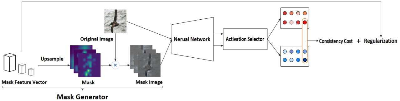 翻译:活跃的神经网络区域外观告诉我们神经网络在做出决策时关注哪些区域,这为我们提供了在神经网络做出分类决定时进行解释的基础。我们提议了一个算法多动态Msk(MDM),这是一个具有推理过程可解释性的一般显性图形查询方法。它的建议基于一个假设:当图片是向受过训练的神经网络输入时,与分类有关的激活功能将影响神经网络的分类结果,而与分类无关的特征将几乎不会影响网络的分类结果。MDM:一个基于学习的终端到终端的算法,用于寻找对神经网络分类感兴趣的区域。它具有以下优点:1.它具有推理过程的可解释性能。2.它是普遍的,它可以用于任何神经网络,而不取决于神经网络的内部结构。3. 搜索性能更好。由于该算法以学习生成掩码为基础,并且有能力适应不同数据和网络的分类结果。MDM:一个基于学习的终端到的终端端端到端端到端端的终端的终端算算算法,我们比在前一张纸上所推荐的神经网络的搜索和内质网络的轨道搜索效果。我们用来比较了机器的网络的网络的网络的轨道搜索和SDM.M.M.