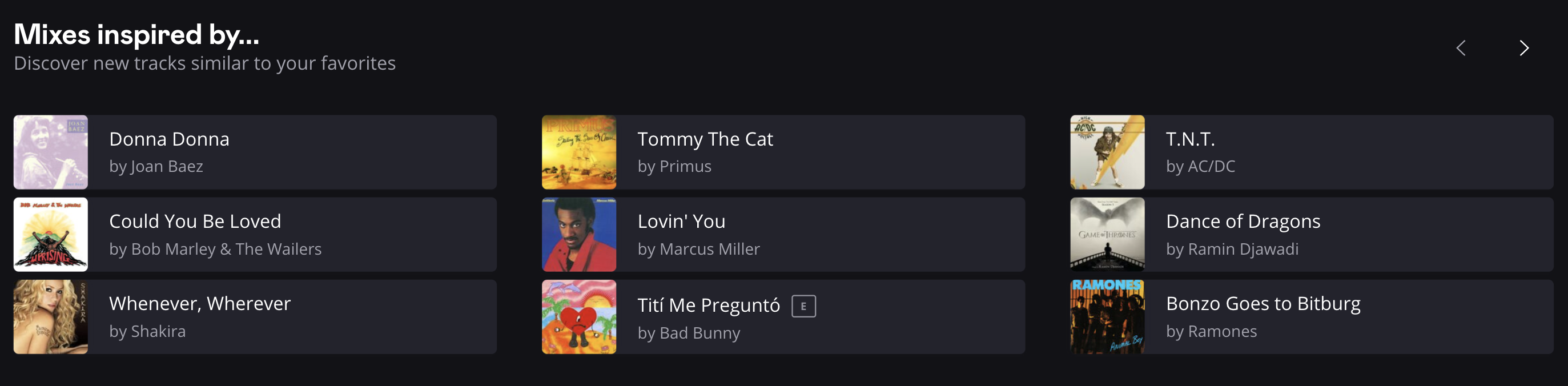This paper introduces Track Mix, a personalized playlist generation system released in 2022 on the music streaming service Deezer. Track Mix automatically generates "mix" playlists inspired by initial music tracks, allowing users to discover music similar to their favorite content. To generate these mixes, we consider a Transformer model trained on millions of track sequences from user playlists. In light of the growing popularity of Transformers in recent years, we analyze the advantages, drawbacks, and technical challenges of using such a model for mix generation on the service, compared to a more traditional collaborative filtering approach. Since its release, Track Mix has been generating playlists for millions of users daily, enhancing their music discovery experience on Deezer.
