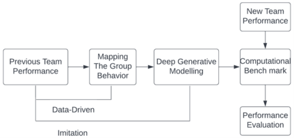 Evaluating the performance of human is a common need across many applications, such as in engineering and sports. When evaluating human performance in completing complex and interactive tasks, the most common way is to use a metric having been proved efficient for that context, or to use subjective measurement techniques. However, this can be an error prone and unreliable process since static metrics cannot capture all the complex contexts associated with such tasks and biases exist in subjective measurement. The objective of our research is to create data-driven AI agents as computational benchmarks to evaluate human performance in solving difficult tasks involving multiple humans and contextual factors. We demonstrate this within the context of football performance analysis. We train a generative model based on Conditional Variational Recurrent Neural Network (VRNN) Model on a large player and ball tracking dataset. The trained model is used to imitate the interactions between two teams and predict the performance from each team. Then the trained Conditional VRNN Model is used as a benchmark to evaluate team performance. The experimental results on Premier League football dataset demonstrates the usefulness of our method to existing state-of-the-art static metric used in football analytics.