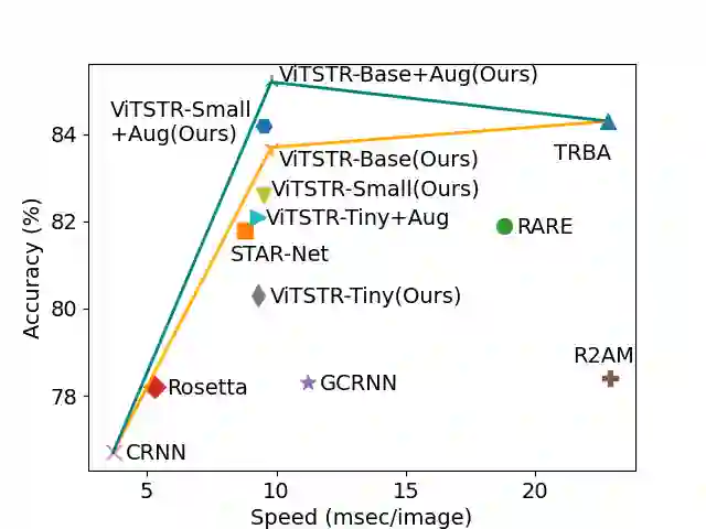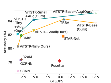 翻译:显示文本识别(STS) 使计算机能够在物体标签、路标和指示等自然场景中阅读文字。 STS 帮助机器执行知情决定, 如选择对象、 方向和下一步行动。 在STS 的正文中, 重点始终是确认准确性。 很少强调速度和计算效率, 这对于能源限制的移动机器来说尤其重要。 在本文中, 我们提议VITSTR, 是一个简单的单一阶段模型结构, 以一个计算和参数高效的视觉变异器( VT) 为基础, 简单的单一阶段。 在类似快速的基线方法( 如TRBA, 精确度为84.3% ), 我们的小VITSTR 实现了82.6%( 84.2%) 的竞争性准确性, 数据增加2.4x速度, 仅使用43.4%的参数和42.2%的FLOPS。 VITS 的所有小版本都达到80.3%的准确性( 82.1%), 速度为2.5x, 只需要10.9%的参数和11.9%的FLOPS。 。 在数据增强中, 的精确性为: 2.3 更精确性为25, 在数据增长中, 或更接近的TRSBRBRBRBRFS 的精确度为23 的精确度为23 。