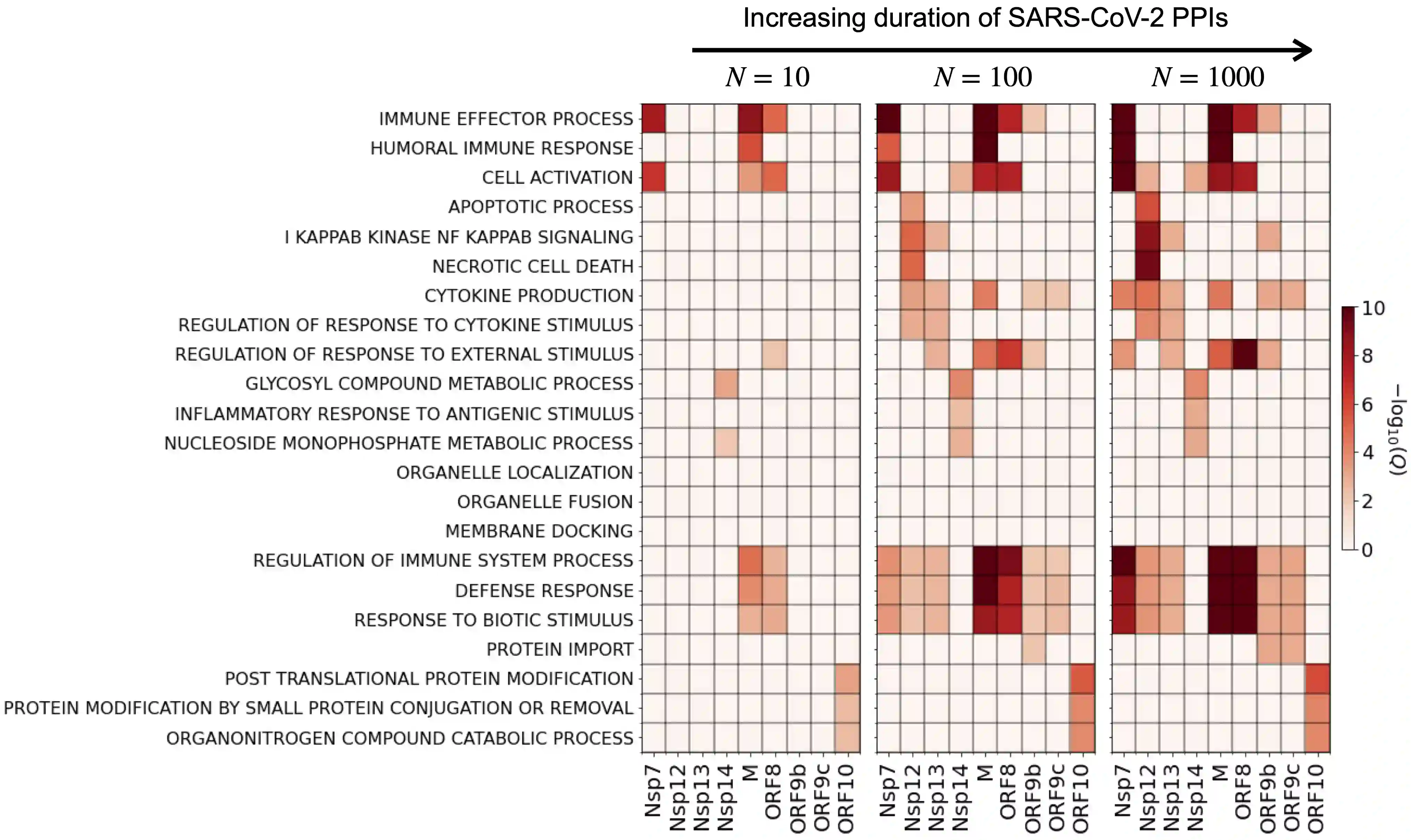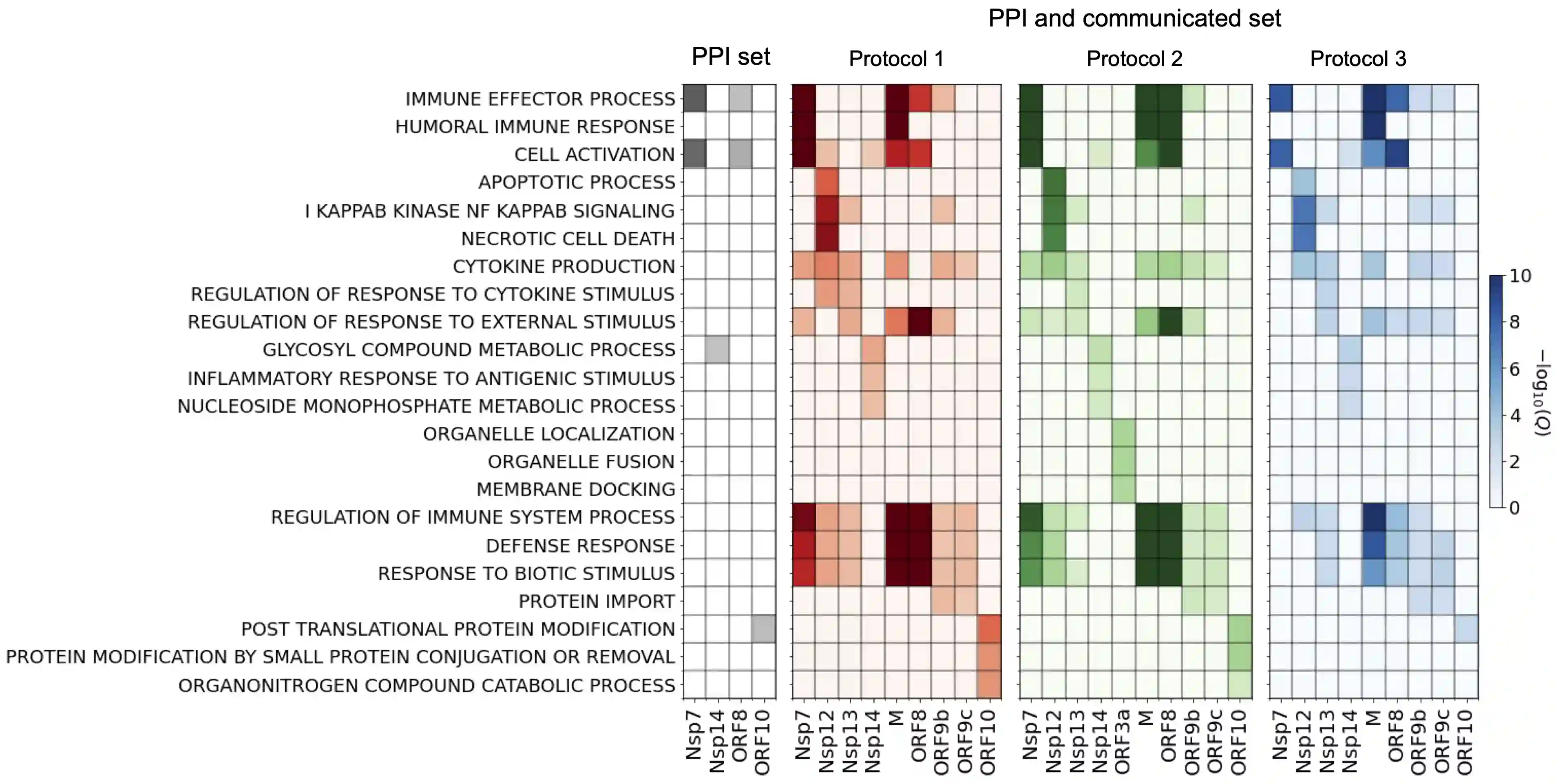 翻译:SARS-COV-2和人类蛋白质(SARS-COV-2 PPIs)之间的相互作用通过有助于COVID-19免疫病理学的生化途径进行信息传输。这里,我们展示了免疫系统的通信网络模型,以利用现有的SARS-COV-2 PPIs数据计算病毒蛋白质传播的信息。传输信息的数量取决于免疫系统的参考状态,或没有SARS-COV-2 PPPIs的国家,并可以量化免疫系统有多少变量受病毒蛋白的控制。免疫系统从病毒蛋白体获得的信息有助于确定易发生衰变的生物过程,并估计发生畸变所需的病毒PPPIs的持续时间。我们发现,计算病毒PPIs因药物而出现的信息下降,是治疗效果的直接措施。