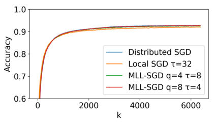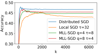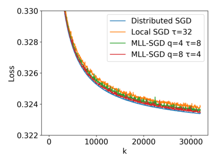 翻译:我们提出多层次本地 SGD, 这是一种分布式梯度方法, 用于在一个多层次的多层次网络中学习一个平滑的非混凝土目标。 我们的网络模型由一组脱节的子网络组成, 包括一个单一的中枢和多个工人节点; 此外, 工人节点可能具有不同的操作率。 中心通过连接, 但不一定是完整的通信网络相互交流信息。 在我们的算法中, 子网络使用中标模式, 执行分布式 SGD 算法, 并且中心定期将模型与相邻中心进行平均。 我们首先提供一个统一的数学框架, 描述多层次本地 SGD 算法 。 我们然后对算法进行理论分析; 我们的分析显示了趋同错误对工人节点、 中枢网络结构的依赖性, 以及本地、 子网络和全球相联体的数量。 我们通过使用 convex 和非 convex 目标的模拟实验来支持我们的理论结果 。
