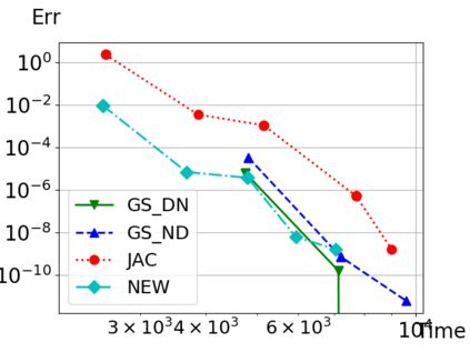 翻译:我们考虑的是波形放松(WW)方法,以分隔地表相混合的多物理学问题的时间整合。 WW允许独立和适应性时间网在独立和适应性时间网上独立的时间分解,同时保持高时间组合顺序。典型的典型的RW方法,如Jacobi或Gauss-Seidel WWW, 通常是平行的或快速的。我们提出了一个新的平行的WWS方法,利用无同步的通讯技术获得两种特性。经典的RW方法在子问题结合后交换离散功能。在时间组合期间,我们使用不同步的时间点交换时间点解决方案,直接将所有新信息纳入内极体。我们展示了连续和时间分解的RW趋同,在将现有的线性WS趋同理论普遍化的框架中,我们展示了选择我们新的RW方法的最佳放松的算法。在两个对调的热传输示例中展示了一致。我们的新方法显示古典的WRW方法的性能改进。在时间融合过程中,我们展示了对调的Eulnial-Flical等方程式进行分置的组合式组合式组合,同时使用非Eulnical-Els-e-eqlus 和已安装的开放的UN-e-Els-eqol-eqlent-eqluslveal-equal-eqpal-eqolpalpal-eqpal-eqal-eqal-lical-lical-dal-eqal-dalplical-lical-lical-lical-cal-lical-lical-lical-lical-lical-cal-lical-sal-sal-cal-cal-cal-cal-cal-cal-cal-cal-cal-cal-cal-calsal-sal-cal-cal-sal-sal-cal-e-e-e-e-e-e-e-e-e-e-e-e-e-e-e-e-e-e-e-e-e-e-e-eal-e-