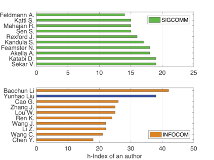 翻译:本研究利用四个重要的计算机网络期刊 -- -- IEEEE通信调查与教学材料(COMST)、IEEE/ACM网络交易(TON)、ACM数据通信特别利益小组(SIGCOMM)和IEEE国际计算机通信会议(INFOCOM)的文章内容和元数据,利用ACM、IEEE Xplore、Scopus和CrossRef, 为期18年(2000-2017年),处理重要的双曲线测量问题。所有网站都声名狼藉,但都出版相当不同的研究。前两期期刊(COMST和TON)是各域的重现期刊,而SIGCOMM和INFOCOM被视为外地的高层会议。 SIGCOM和INFOCOM国际会议发表了新的原始研究。 TO有类似的主题,并公布了新的原始研究版本,例如SIGM和INFOCOM等会议发表的不同研究的扩展版本(SIGM, 计算,我们通过我们的研究,不仅总结了先前的著作,而且突出未来的研究内容)。 在这项研究中,我们用SIGOIRC的分析中,我们的目的是追踪S-IG的网络分析。