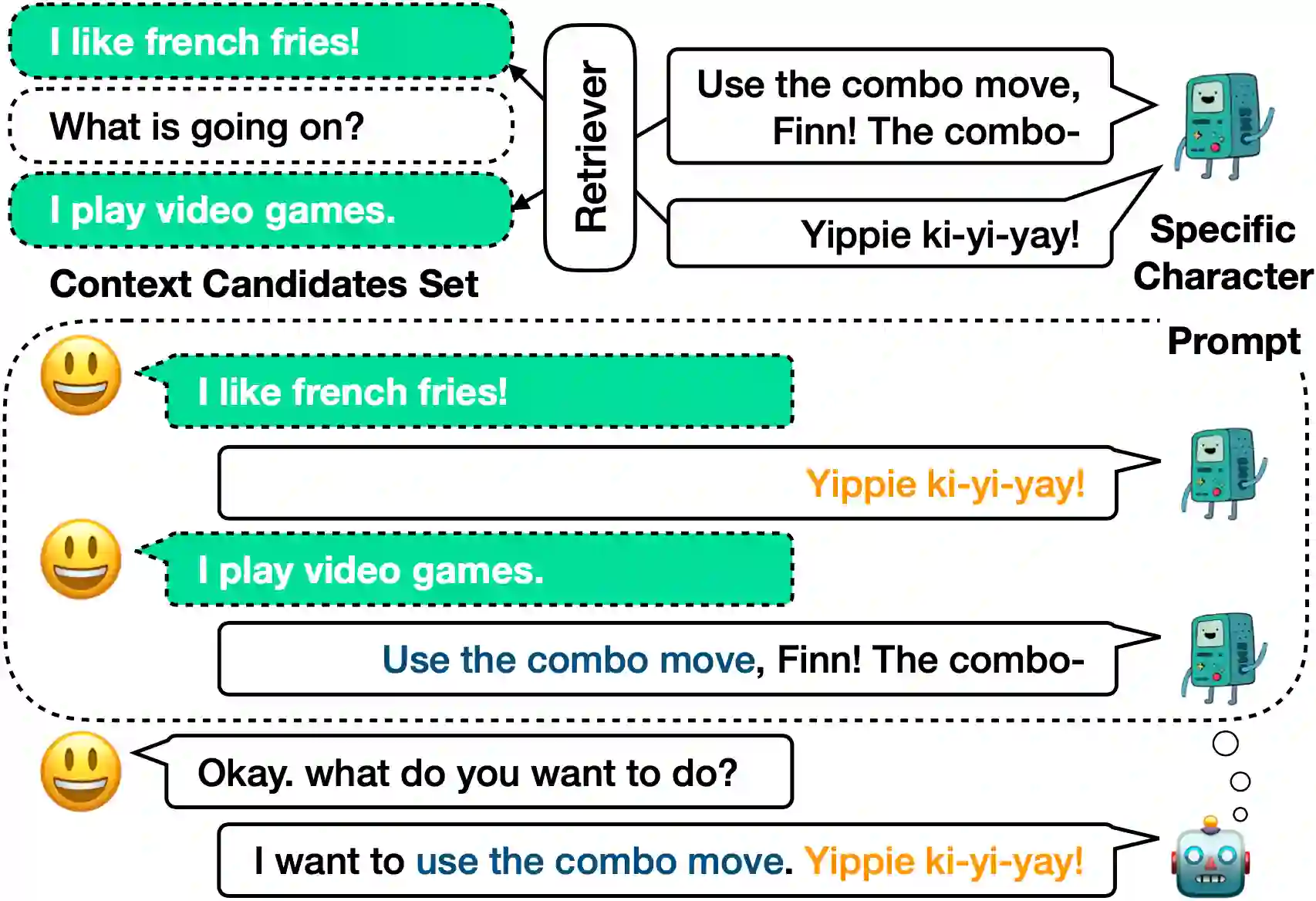 翻译:在本文中, 我们把模仿虚构字符视为建设有吸引力的对话模式的有希望的方向。 为此, 我们提出了一个新的实用任务, 每一个虚构字符只有几句话可用于生成模拟反应。 此外, 我们提出一个名为 Pseudo Dialog 的新方法, 通过利用大型语言模型的力量来生成响应, 包括目标字符的提示。 为了更好地反映字符的风格, PDP 以对话框的形式构建提示, 包括字符的表达作为对话框的历史。 由于在拟议任务中只有字符的表达, PDP 使用一个检索模型, 将每一个预定义的背景候选人的适当的伪文本匹配起来。 我们通过人文和自动评估显示, PDP 生成的响应比基线方法更能反映虚构字符的风格。