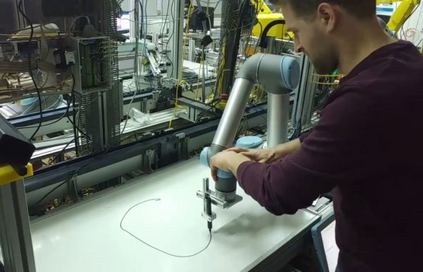 Design usually relies on human ingenuity, but the past decade has seen the field's toolbox expanding to Artificial Intelligence (AI) and its adjacent methods, making room for hybrid, algorithmic creations. This article aims to substantiate the concept of interspecies collaboration - that of natural and artificial intelligence - in the active co-creation of a visual identity, describing a case study of the Regional Center of Excellence for Robotic Technology (CRTA) which opened on 750 m2 in June 2021 within the University of Zagreb. The visual identity of the Center comprises three separately devised elements, each representative of the human-AI relationship and embedded in the institution's logo. Firstly, the letter "C" (from the CRTA acronym) was created using a Gaussian Mixture Model (GMM) applied to (x, y) coordinates that the neurosurgical robot RONNA, CRTA's flagship innovation, generated when hand-guided by a human operator. The second shape of the letter "C" was created by using the same (x, y) coordinates as inputs fed to a neural network whose goal was to output letters in a novel, AI-generated typography. A basic feedforward back-propagating neural network with two hidden layers was chosen for the task. The final and third design element was a trajectory the robot RONNA makes when performing a brain biopsy. As CRTA embodies a state-of-the-art venue for robotics research, the 'interspecies' approach was used to accentuate the importance of human-robot collaboration which is at the core of the newly opened Center, illustrating the potential of reciprocal and amicable relationship that humans could have with technology.
