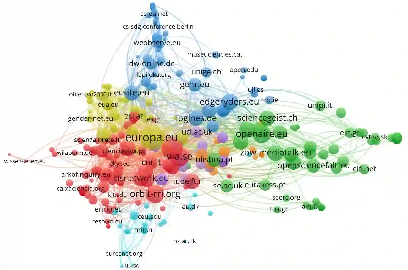 翻译:这项研究探讨了研究项目网站的社会内涵,将两个目标结合起来:根据它们的网络链接关系确定研究项目的特点,并通过网络链接发现与项目有关的外部社会行为者;研究以121个欧盟资助的研究项目及其网站为基础;收集了研究项目网站的域名,并将其用于共同链接关系的可视化;这些分析揭示了研究项目之间以及参考实体之间的专题相似性;此外,在围绕研究项目公开潜在相关利益攸关方方面迈出了第一步;讨论了网络链接分析,将其作为监测研究项目内部和外部联系的有见地工具,代表了对网络测量方法的相关应用。