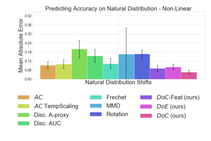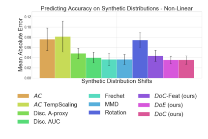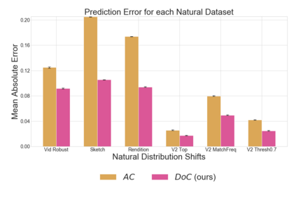翻译:最近的工作表明,当根据分布接近但不同于培训分布的数据对模型的分布数据进行评估时,机器学习模型的性能可以大不相同。因此,预测无形分布的模型性能是一项重大挑战。我们的工作将领域适应和预测不确定性文献的技术联系起来,使我们能够预测挑战性无形分布的模型性能,而没有获得标签数据。在分布转移方面,分配距离常常被用来调整模型,改进新领域的性能,而精确估计或其他形式的预测性不确定性往往在这些调查中被忽视。通过调查各种既定的分布距离,例如Frechet距离或最大平均值偏差,我们确定这些模型未能产生对分布变化中的性能的可靠估计。另一方面,我们发现一个分类器预测的可信度差异(DoC)成功地估计了分类器在各种变化中的性能变化。我们特别调查合成和自然分布变化之间的区别,并观察到尽管DoC的简单程度持续超过对分布差异的其他量化,例如Frechet 距离或最大平均值偏差,我们确定它们未能产生可靠的对分布变化的可靠估计。另一方面,我们发现,一个分类器的预测值之间的信任差异通过现实化数据流差($) 和图像分布上几乎一半的预测错误。