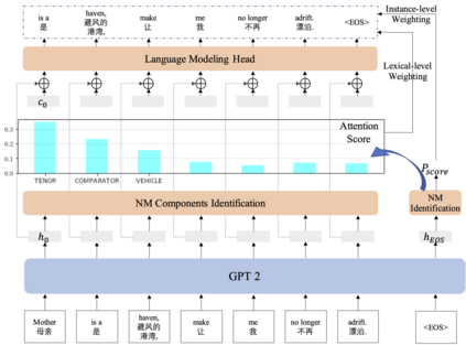 翻译:名义隐喻经常用于人类语言,并被证明在说服、表达情感和激发兴趣方面是有效的。本文件处理中国名模代(NM)的问题。我们引入了一个新的多任务框架,共同优化了三项任务:NM识别、NM组成部分识别和NM代。隐喻识别模块能够进行自我培训程序,从大规模无标签的NM一代中发现新的隐喻。NM组成部分识别模块强调在培训和条件中的组成部分,这些组成部分的生成可以取得更加一致的结果。为了培训NM识别和组成部分识别模块,我们建立了一个附加说明的体,由6.3k句组成,包含多种隐喻模式。自动指标显示,我们的方法可以产生多种易读的隐喻,其中92 ⁇ 是新颖的隐喻比较。人类评估显示,我们的模型在一致性和创造性方面大大超出基线。