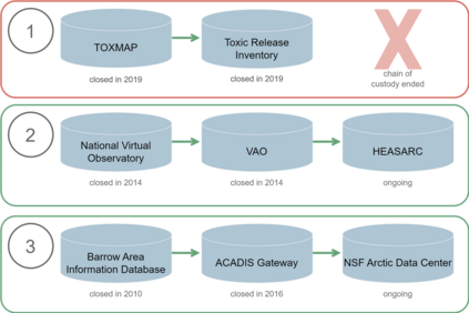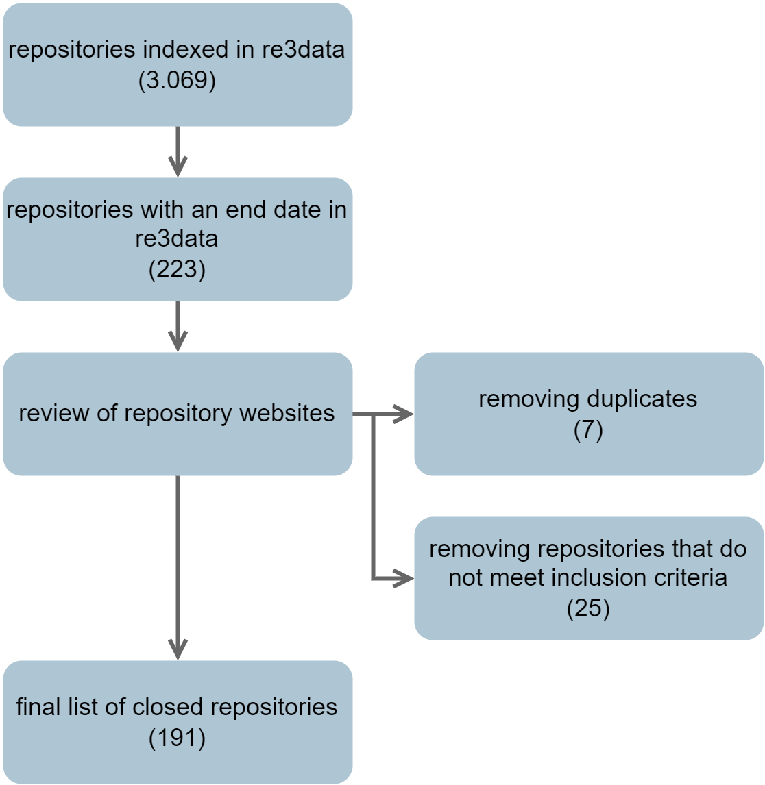 Currently, there is limited research investigating the phenomenon of research data repositories being shut down, and the impact this has on the long-term availability of data. This paper takes an infrastructure perspective on the preservation of research data by using a registry to identify 191 research data repositories that have been closed and presenting information on the shutdown process. The results show that 6.2 % of research data repositories indexed in the registry were shut down. The risks resulting in repository shutdown are varied. The median age of a repository when shutting down is 12 years. Strategies to prevent data loss at the infrastructure level are pursued to varying extent. 44 % of the repositories in the sample migrated data to another repository, and 12 % maintain limited access to their data collection. However, both strategies are not permanent solutions. Finally, the general lack of information on repository shutdown events as well as the effect on the findability of data and the permanence of the scholarly record are discussed.
