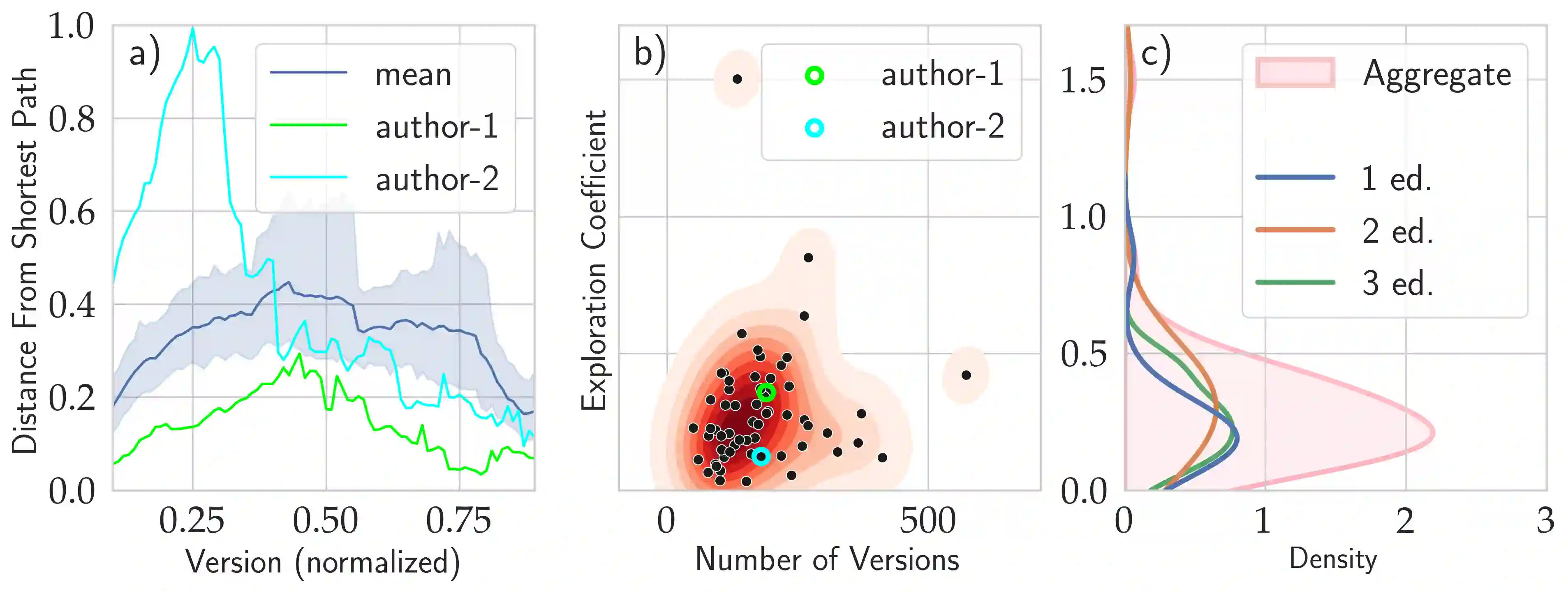 翻译:写作过程是一个复杂的过程, 是现代人类活动的中心。 尽管它看起来是一个线性过程, 写作过程掩盖了许多高度非线性的过程。 以前的研究集中在三个写作阶段: 规划、 翻译、 抄录和 修改。 虽然研究显示这些是非线性, 但当测量时往往被线性地处理。 在这里, 我们引入了测量和量化规划( 探索) 和翻译( 开发) 的子周期( 开发) 的措施。 我们将这些应用到一个新数据集, 它记录了从早期尝试到最终版本的结束。 这个数据集来自一系列的写作讲习班, 通过创新版本, 我们记录了文本的创建过程。 这个数据集来自一系列的写作工作, 通过创新版本的软件, 我们得以记录这些步骤。