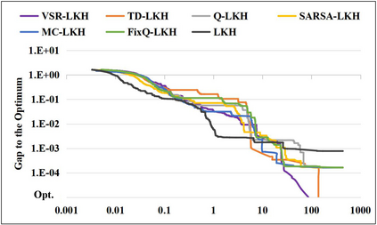 翻译:我们处理旅行推销员问题(TSP),这是一个著名的NP硬型组合优化问题。我们提出了一个可变战略强化方法,称为VSR-LKH,将三种强化学习方法(Q-learning, Sarsa和Monte Carlo)与众所周知的TSP算法(Lin-Kernighan-Helsgaun (LKH))相结合。 VSR-LKH取代了LKH的不灵活轮行操作,让方案通过强化学习在每一个搜索步骤中做出选择。 TSPLIB的111个TSP基准的实验结果显示了拟议方法的出色表现。