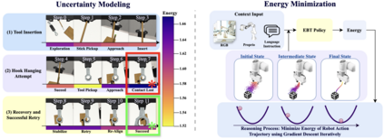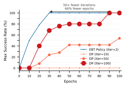 Implicit policies parameterized by generative models, such as Diffusion Policy, have become the standard for policy learning and Vision-Language-Action (VLA) models in robotics. However, these approaches often suffer from high computational cost, exposure bias, and unstable inference dynamics, which lead to divergence under distribution shifts. Energy-Based Models (EBMs) address these issues by learning energy landscapes end-to-end and modeling equilibrium dynamics, offering improved robustness and reduced exposure bias. Yet, policies parameterized by EBMs have historically struggled to scale effectively. Recent work on Energy-Based Transformers (EBTs) demonstrates the scalability of EBMs to high-dimensional spaces, but their potential for solving core challenges in physically embodied models remains underexplored. We introduce a new energy-based architecture, EBT-Policy, that solves core issues in robotic and real-world settings. Across simulated and real-world tasks, EBT-Policy consistently outperforms diffusion-based policies, while requiring less training and inference computation. Remarkably, on some tasks it converges within just two inference steps, a 50x reduction compared to Diffusion Policy's 100. Moreover, EBT-Policy exhibits emergent capabilities not seen in prior models, such as zero-shot recovery from failed action sequences using only behavior cloning and without explicit retry training. By leveraging its scalar energy for uncertainty-aware inference and dynamic compute allocation, EBT-Policy offers a promising path toward robust, generalizable robot behavior under distribution shifts.