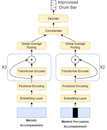 翻译:创建像音乐这样的复杂艺术作品需要深刻的创造力。 随着最近深层学习和强大的模型(如变压器)的进步, 自动音乐生成取得了巨大的进步。 在伴奏的一代中, 创建一个和谐的鼓式, 配有相配的填充和即兴在合适的歌曲中创作是一个艰巨的任务, 即使对于有经验的鼓手来说也是如此。 Drum 的拍打往往会通过在节界内填充或即兴制作的节奏来遵循一种重复模式。 在这项工作中, 我们处理鼓式生成的任务以四种旋律仪器( 即钢琴、 吉他、 巴斯 和 Strings ) 的伴奏音乐为条件。 我们用变音器序列模型来生成一个基本的鼓式, 以旋律配音为条件, 来发现即使旋律配音基本上不存在, 这可能是由于在培训数据中的预期代表性较低。 我们提议了一个新功能, 来捕捉到酒吧内与邻居的即时情调的程度。 我们训练一个模型, 来预测从旋调调的节奏的节奏结构中, 和制结构中的新式的补。 我们使用了新式的平时制结构, 的补式的补制结构。
