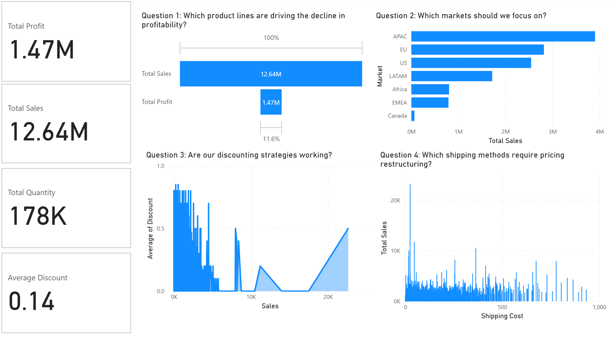 Effective business intelligence (BI) dashboards evolve through iterative refinement rather than single-pass design. Addressing the lack of structured improvement frameworks in BI practice, this study documents the four-stage evolution of a Power BI dashboard analyzing profitability decline in a fictional retail firm, Global Superstore. Using a dataset of \$12.64 million in sales across seven markets and three product categories, the project demonstrates how feedback-driven iteration and gap analysis convert exploratory visuals into decision-support tools. Guided by four executive questions on profitability, market prioritization, discount effects, and shipping costs, each iteration resolved analytical or interpretive shortcomings identified through collaborative review. Key findings include margin erosion in furniture (6.94% vs. 13.99% for technology), a 20% discount threshold beyond which profitability declined, and \$1.35 million in unrecovered shipping costs. Contributions include: (a) a replicable feedback-driven methodology grounded in iterative gap analysis; (b) DAX-based technical enhancements improving interpretive clarity; (c) an inductively derived six-element narrative framework; and (d) evidence that narrative coherence emerges organically through structured refinement. The methodology suggests transferable value for both BI practitioners and educators, pending validation across diverse organizational contexts.
