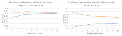The recent success of deep learning models in solving complex problems and in different domains has increased interest in understanding what they learn. Therefore, different approaches have been employed to explain these models, one of which uses human-understandable concepts as explanations. Two examples of methods that use this approach are Network Dissection and Compositional explanations. The former explains units using atomic concepts, while the latter makes explanations more expressive, replacing atomic concepts with logical forms. While intuitively, logical forms are more informative than atomic concepts, it is not clear how to quantify this improvement, and their evaluation is often based on the same metric that is optimized during the search-process and on the usage of hyper-parameters to be tuned. In this paper, we propose to use as evaluation metric the Detection Accuracy, which measures units' consistency of detection of their assigned explanations. We show that this metric (1) evaluates explanations of different lengths effectively, (2) can be used as a stopping criterion for the compositional explanation search, eliminating the explanation length hyper-parameter, and (3) exposes new specialized units whose length 1 explanations are the perceptual abstractions of their longer explanations.
