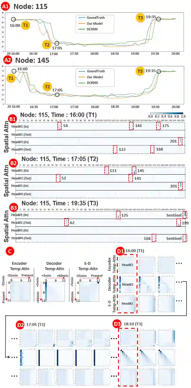 翻译:预测道路交通速度是一项具有挑战性的任务,原因是道路类型不同,速度变化突然,道路之间的空间依赖性不同,道路之间的空间依赖性也不同,这要求对道路之间的空间依赖性动态变化和长输入序列的时间模式进行建模。本文件提出一个新的Spatio-Temoal Patoral Patorat Convention(STGRAT)(STGRAT)(STGRAAT)(STGRAAT),该模型有效地捕捉了道路网络空间-时空动态动态。我们的方法特征主要包括空间关注、时间关注和空间监控矢量。空间关注包括图表结构信息(例如道路之间的距离)和动态调整基于道路状态的空间相关性。时间关注是捕捉交通速度变化的责任,而哨载矢量则允许该模型从空间相关节点中检索新特征或保存现有特征。实验结果表明,STGRAAT(STGRAAT)比现有模型(特别是在交通速度迅速变化的困难条件下(e.g,高峰时)。我们提供了一项定性研究,以分析STGRAAT)主要在高峰时间里作出准确预测的时间。