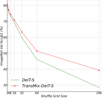 翻译:在培训期间,发现基于混合的增强功能对于推广模型是有效的,特别是对于愿景变换器(Vipple Greangers)而言,因为很容易过宽。然而,以往的基于混在一起的方法以前就有一个基本知识,即线性内插目标比应保持与输入内插中提议的比例相同。这可能导致一个奇怪的现象,即由于随机增强过程,混合图像中有时没有有效的对象,但在标签空间中仍然有反应。为了缩小输入和标签空间之间的这种差距,我们提议 TransMix,根据视野变换器的注意地图混合标签。如果相应的输入图像被关注图加权高,则标签的信心会更大。 TransMix简单易尴尬,可以在几行代码中执行,而不引入任何额外的参数和基于 ViT 模型的FLOPs。实验结果显示,我们的方法可以在图像网分类的尺度上不断改进基于ViT的各种模型。在对 TransMix进行预先训练后,基于 ViT-h的模型也会更有信心,如果相应的输入图像图像图像图像图像图像图像图像图像图像,那么的模型也会显示更可靠地显示M 4 Transmocils 。
