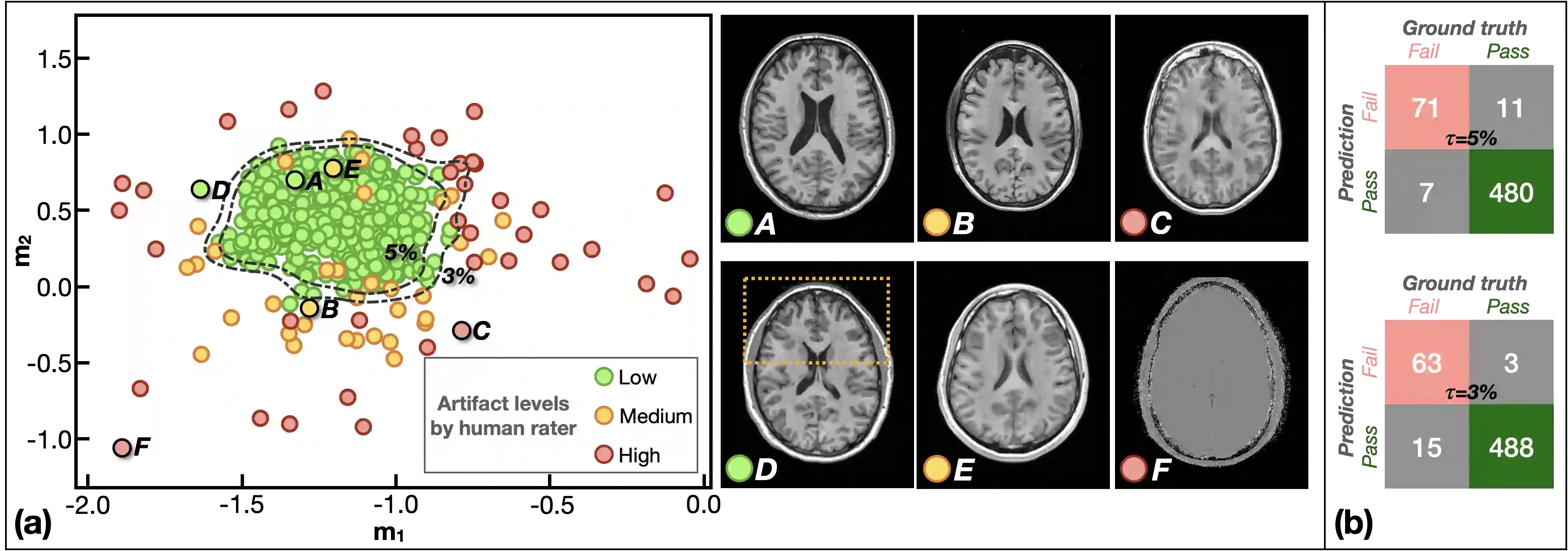 翻译:图像质量控制( IQC) 可用于自动磁共振图像分析, 以排除错误的结果, 这些错误的结果是由不良获得的或被文物覆盖的图像造成的。 MR 成像的现有 IQC 方法一般要求人努力制作有意义的特征或为监督培训的大型数据集贴标签。 人类劳动的参与可能繁琐而有偏见, 因为根据质量贴上 MR 图像标签是一项主观任务 。 在本文中, 我们提议一个自动的 IQC 方法, 不经监督地评估MR 图像中的文物范围 。 特别是, 我们设计一个基于对比性学习的文物编码网络 。 我们随后使用正常化的流程来估计为不受监督的分类而学习显示的密度 。 我们在大型多孔 MR 数据集上的实验显示, 拟议的方法精确地检测了高水平的人工制品图像, 这可以让下游分析任务了解潜在的缺陷数据 。