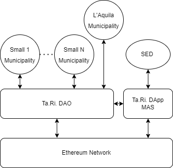 Servizi Elaborazioni Dati SpA is a public company owned by Municipality of L Aquila, it supplies the institution with network services and software applications for distributing services to citizens. The future policy of the company is to enlarge the offer of its services to nearby communities that are unable to set up and maintain their own network and software structures. This paper presents thus a possible architecture model to support small municipalities in supplying public services to citizens, with the aid of SED Spa. Through second level platforms based on Blockchain networks and Multi-agents Systems running on smart contracts, the system will focus on Waste Tax (Ta.Ri) management system in the Fascicolo del Cittadino environment.