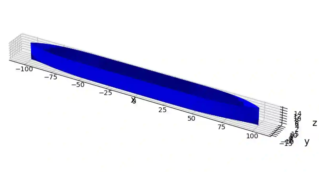 We proposed a GAN-based method to generate a ship hull form. Unlike mathematical hull forms that require geometrical parameters to generate ship hull forms, the proposed method requires desirable ship performance parameters, i.e., the drag coefficient and tonnage. The requirements of ship owners are generally focused on the ship performance and not the geometry itself. Hence, the proposed model is useful for obtaining the ship hull form based on an owner's requirements. The GAN model was trained using a ship hull form dataset generated using the generalized Wigley hull form. The proposed method was evaluated through numerical experiments and successfully generated ship data with small errors.
