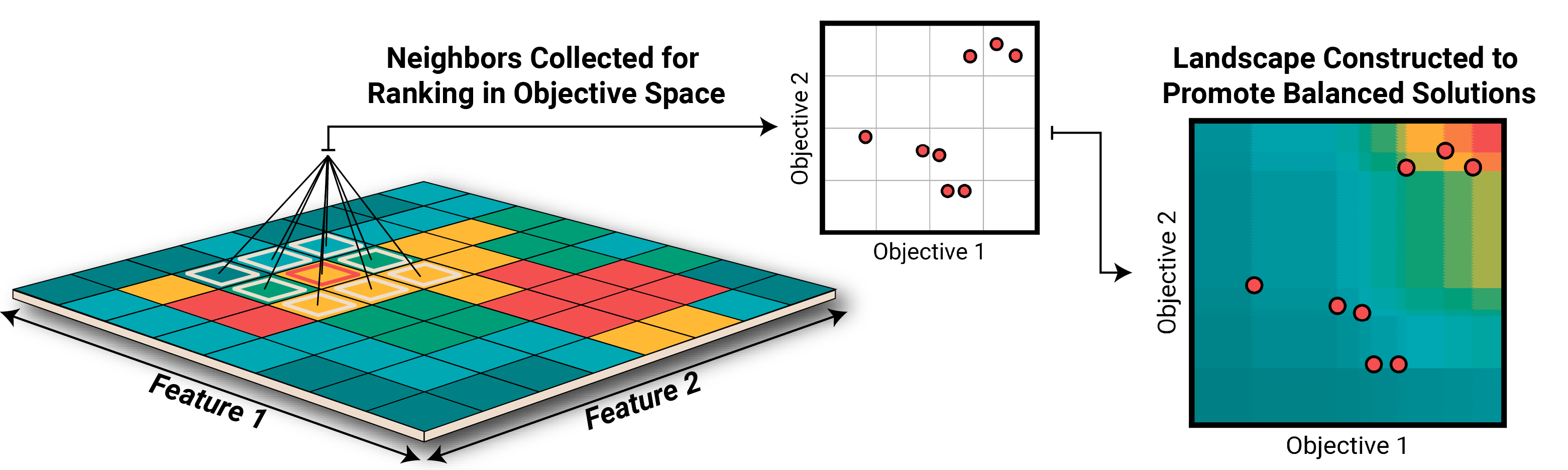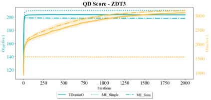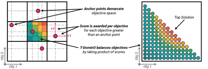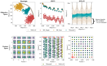 翻译:现实世界的设计问题是各种制约、目标和特征的杂乱组合。 探索这些问题空间可以被定义为多标准探索(MCX)问题,其目标是在很多目标中产生一套具有高性能的多样化解决方案,同时避免任何目标的低效。 质量- 多样性算法产生所需的设计差异,但通常只考虑一个单一的目标。 我们提出了一个新的排名,即T- DominO, 专门用来处理MCX问题中的多重目标。 T-DominO将个人排在档案中其他解决方案的排名中,有利于个人,使其业绩平衡,优于那些以其他成本为代价在少数目标上优于少数目标的人。 在每个MAP- Elites bin 中只保留一个单一的平衡解决方案, 保持对档案的可视性 -- -- 这是设计探索的强大资产。 我们展示了一套易于理解的基准, 并在一个多目标真实世界的案例研究中展示其潜力。
