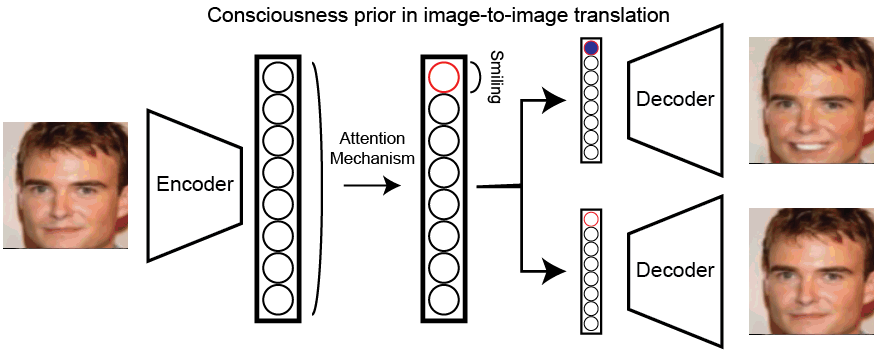 Unsupervised image-to-image translation consists of learning a pair of mappings between two domains without known pairwise correspondences between points. The current convention is to approach this task with cycle-consistent GANs: using a discriminator to encourage the generator to change the image to match the target domain, while training the generator to be inverted with another mapping. While ending up with paired inverse functions may be a good end result, enforcing this restriction at all times during training can be a hindrance to effective modeling. We propose an alternate approach that directly restricts the generator to performing a simple sparse transformation in a latent layer, motivated by recent work from cognitive neuroscience suggesting an architectural prior on representations corresponding to consciousness. Our biologically motivated approach leads to representations more amenable to transformation by disentangling high-level abstract concepts in the latent space. We demonstrate that image-to-image domain translation with many different domains can be learned more effectively with our architecturally constrained, simple transformation than with previous unconstrained architectures that rely on a cycle-consistency loss.