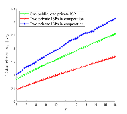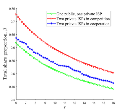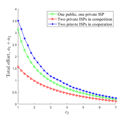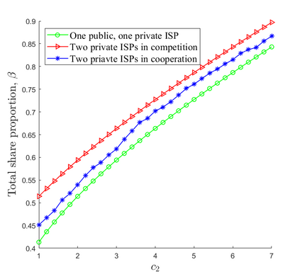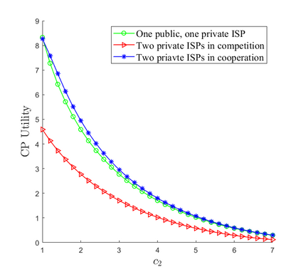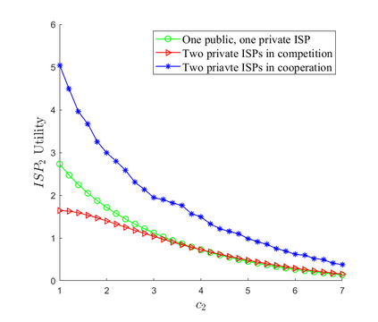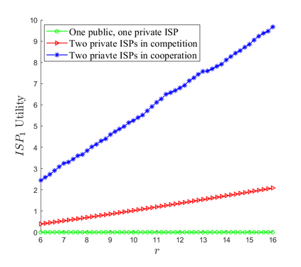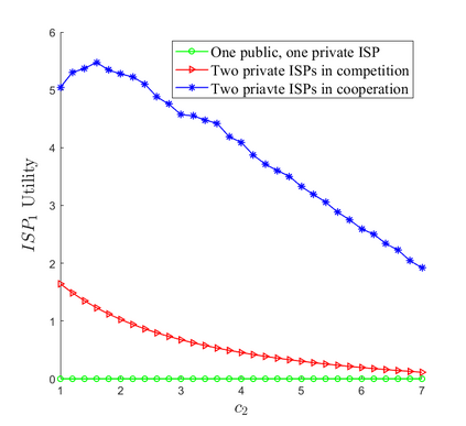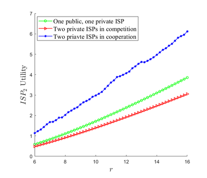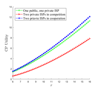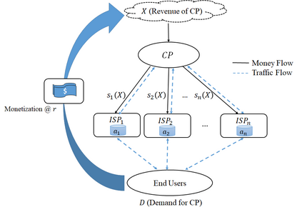 翻译:互联网服务提供商(ISP)长期以来一直要求内容提供者(CPS)分享其在网络基础设施投资方面的利润。在本文中,我们研究的是与多个ISP的CP公司之间的利润分享合同。每个ISP都承诺通过更多的投资努力提高终端用户的服务质量(QOS ) 。互联网服务提供商同意分享由于对网络内容的更高需求而产生的利润。我们第一次示范了CP和ISP之间的非合作性互动,作为两阶段的Stackelberg游戏。CP是决定其利润与ISP共享的部分的领头人。每个ISP随后同时决定提高网络质量的努力(投资)量。在这里,CP无法观察ISP的个别努力,这给CP决定如何与每个ISP分享利润带来了挑战。因此,我们还调查了一种合作设想,CP公司只决定它给ISP的全部份额,然后每个ISP公司自己合作分享利润。我们研究了IPS公司与ICP公司之间这种合作的效果。我们研究的是,我们通过建立以ICP公司为基础的合作。