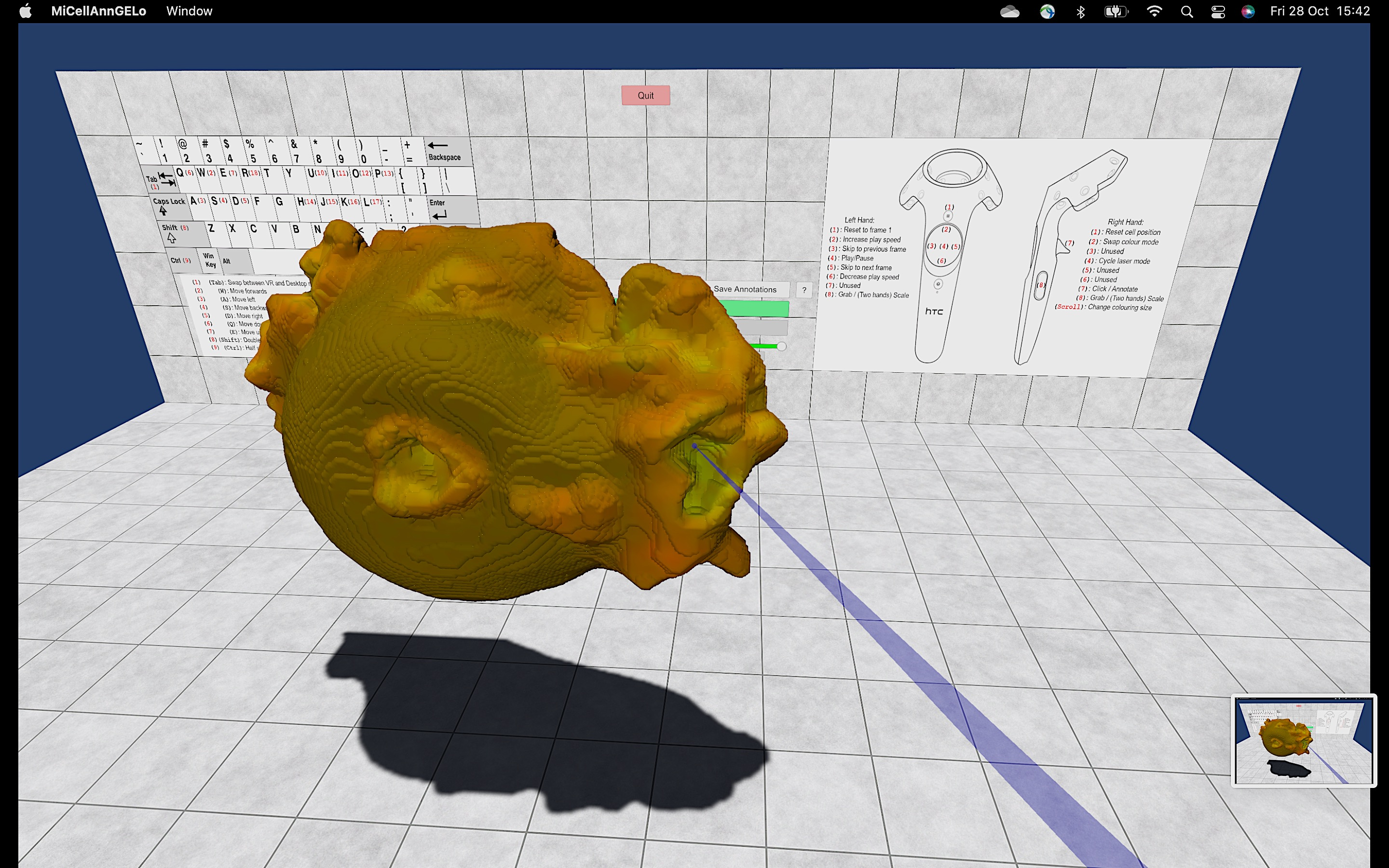 翻译:概要: 3D活细胞显微镜的进展使得能够高清晰地捕捉先前未观测到的工艺。 但是,由于难以手工说明3D培训数据,释放现代机器学习方法的力量以充分受益于这些技术而受挫。 MiCellAnnGELO虚拟现实软件为查看4D显微镜数据并与之互动提供了一个隐蔽的环境,包括有效的注解工具。我们提供了对细胞表面进行标签的工具,其应用范围很广,包括细胞运动、内分泌和感应信号。可用性和实施: MiCellAnnGELO使用十字平台(Mac/Unix/Windows)团结游戏引擎,根据麻省理工学院的许可证可在https://github.com/CellDynamics/MICellAnnGELO.git上查阅,同时提供样本数据和示范电影。 MiCellAnnGELO可以以桌面模式在2D屏幕上运行,或3D使用标准VR头与GPU运行。
