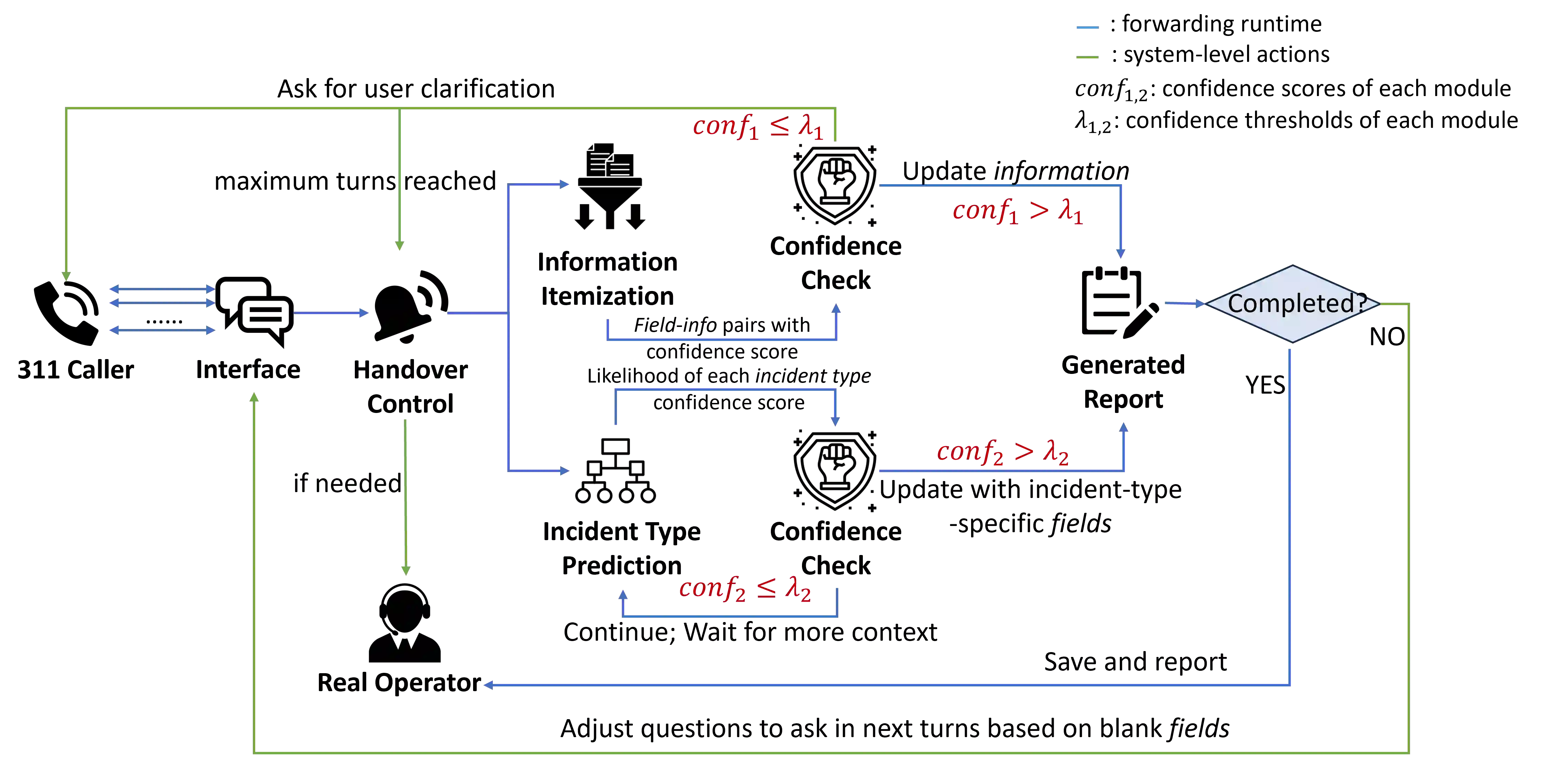 Emergency and non-emergency response systems are essential services provided by local governments and critical to protecting lives, the environment, and property. The effective handling of (non-)emergency calls is critical for public safety and well-being. By reducing the burden through non-emergency callers, residents in critical need of assistance through 911 will receive a fast and effective response. Collaborating with the Department of Emergency Communications (DEC) in Nashville, we analyzed 11,796 non-emergency call recordings and developed Auto311, the first automated system to handle 311 non-emergency calls, which (1) effectively and dynamically predicts ongoing non-emergency incident types to generate tailored case reports during the call; (2) itemizes essential information from dialogue contexts to complete the generated reports; and (3) strategically structures system-caller dialogues with optimized confidence. We used real-world data to evaluate the system's effectiveness and deployability. The experimental results indicate that the system effectively predicts incident type with an average F-1 score of 92.54%. Moreover, the system successfully itemizes critical information from relevant contexts to complete reports, evincing a 0.93 average consistency score compared to the ground truth. Additionally, emulations demonstrate that the system effectively decreases conversation turns as the utterance size gets more extensive and categorizes the ongoing call with 94.49% mean accuracy.