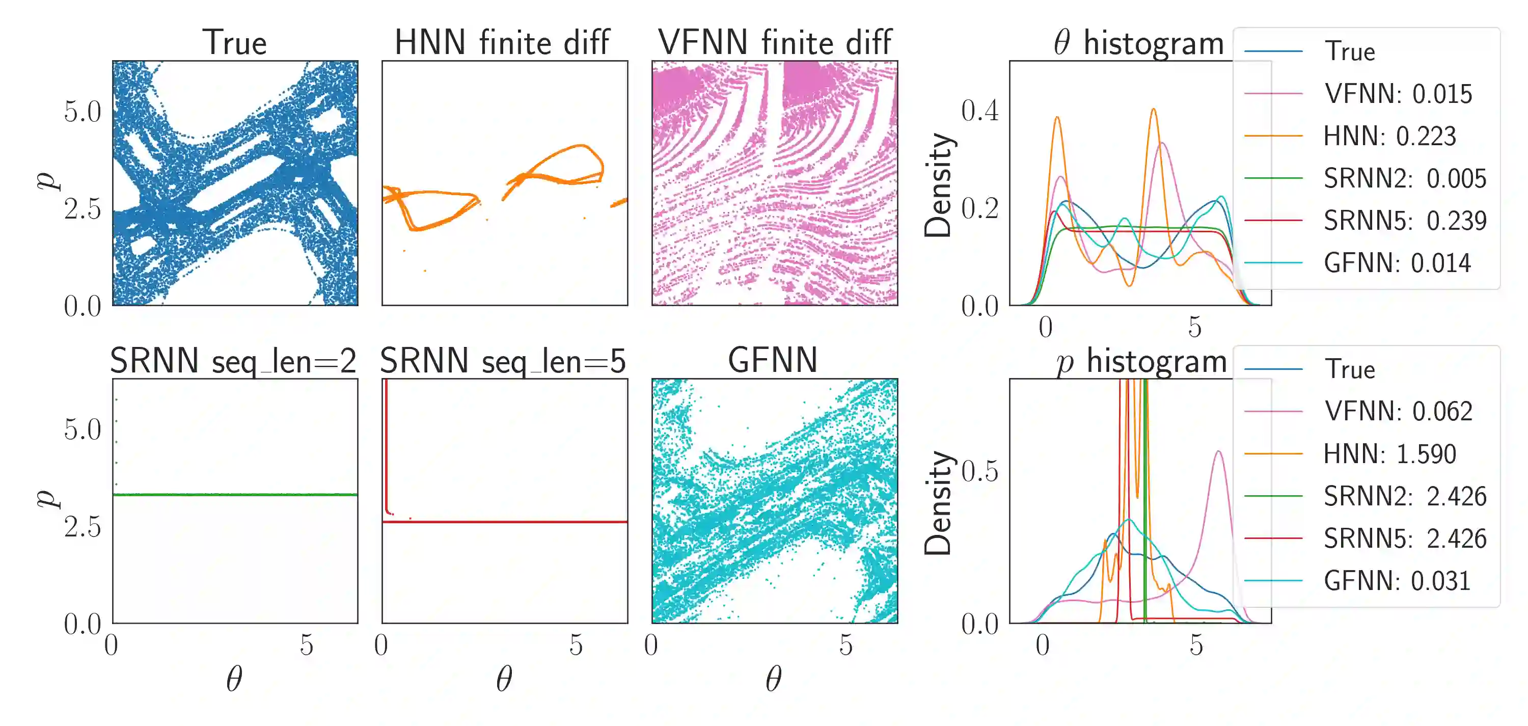 翻译:我们考虑的是由潜伏的分布式地图产生的非线性时间序列的学习和预测。 一个特例是汉密尔顿系统(不一定分解), 其解决方案流提供了这样的分布式地图。 对于这个特例, 两种基于学习潜伏的 ODE 矢量场的通用方法, 以及基于学习生成矢量场的汉密尔顿人所存在的专门方法。 然而, 我们的方法是不同的, 因为它不依赖矢量场, 也不假定它的存在; 相反, 它直接在离散时间里学习了共性进化进化图。 此外, 我们通过生成功能代表共性地图图, 我们通过一个神经网络( 名称为 GFNN) 的近似。 对于这个特例, 我们进化图的近似总是 emph{ exactly} 符号性方法。 这种额外的地理测量结构使得每一步的本地预测错误可以以控制的方式累积, 并且根据合理的假设, 全球预测误差在大多数 emph{线性 } 来这样做。 我们通过一个长的预测性地图时间来代表共振测测测测图性地图的地图场,, 从而在以不变的 的数值系中, 的数值系中, 的数值系中, 进一步地数据源值的数值系中, 进一步地显示着一个基于的数值系的数值系的数值系的实地的数据源值的数值系中的数据源的 。