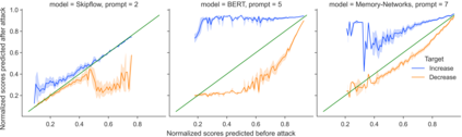 翻译:州和语言测试机构都积极使用基于深学习的自动读取 Scorning (AES) 系统来评估数百万名候选人参加从大学申请到签证审批等改变人生的决定。 然而,几乎没有研究来理解和解释深学习的评分算法的黑箱性质。 以前的研究表明, 评分模式很容易被愚弄。 在本文中, 我们探索了它们惊人的对抗性细小性( AES) 背后的原因。 我们利用最近在可解释性方面的进展, 以找出诸如一致性、 内容、 词汇和相关性等特征对于自动评分机制的重要性。 我们用这个来调查过度敏感度( 即: 产出评分的大幅变化, 投入论文内容稍有改变) 和过度可理解性( ) 。 我们的评分模型尽管被训练为“ 端对端” 模型, 但也发现它们比BERT更丰富的背景嵌嵌入模型, 表现得像袋词模型。 我们用几个字来决定论文评分, 而没有过分的评分数, 使任何选择的评分 模式 能够进行最接近的 。