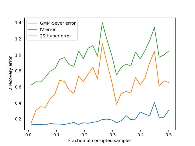 翻译:对于统计和计量经济学中的许多推论问题,未知的参数是由一组时刻条件确定的。解决瞬间条件的通用方法是通用模型(GMM)。然而,古典的GMM估计可能非常敏感。过去曾开发过强效的GMM估计器,但有以下几个缺点:计算可忽略性、维度依赖性差,以及当有一定比例的外差时,没有量化的恢复保障。在这项工作中,我们开发了第一个计算高效的GMM估计器(根据直观假设),它可以容忍对称腐蚀性样品中固定的 $\ epslon 部分,并且具有$O(sqrt=epsilon}) 的恢复保证。为了实现这一点,我们利用并扩展了最近有关算法稳健统计的系列工作,例如平均估计、线性回归和透视优化。作为我们算法的一般的两个例子,我们展示了我们的估测算法和正反正轨数据,我们如何运用了两度的实验室级级的回归。